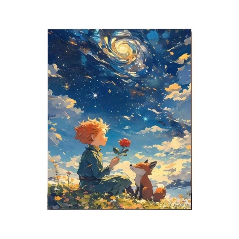 成品小王子装 饰画星空玫瑰花动漫唯美治愈仿油画风卧室客厅摆挂画