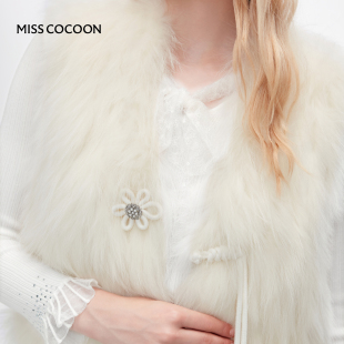 MISSCOCOON可可尼白色貉子毛皮草女2025秋冬新款 轻国风简约马甲