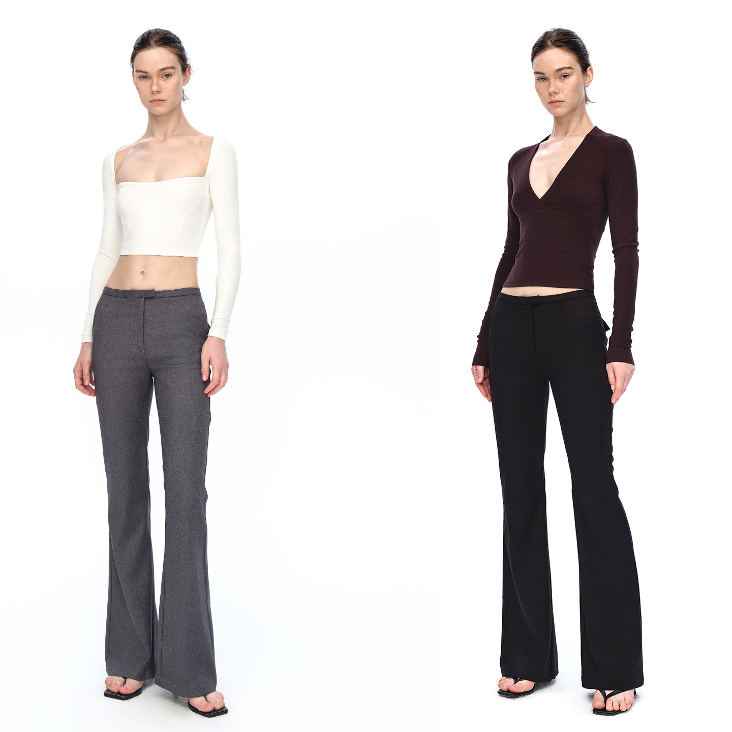 休闲松弛运动裤 女灰色修身 子 黑色微喇直筒低腰卫裤 asomesome美式