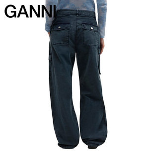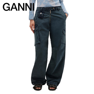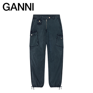 裤 海军蓝多口袋收腰直筒阔腿工装 GANNI女装 W1011683 秋冬新品