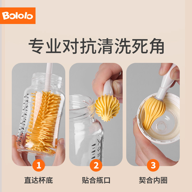 波咯咯硅胶奶瓶刷吸管刷婴儿奶嘴刷子清洁刷套装 u先