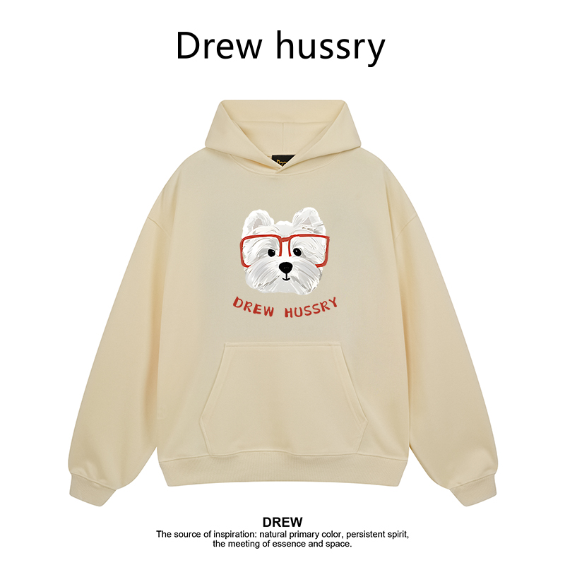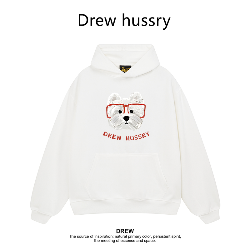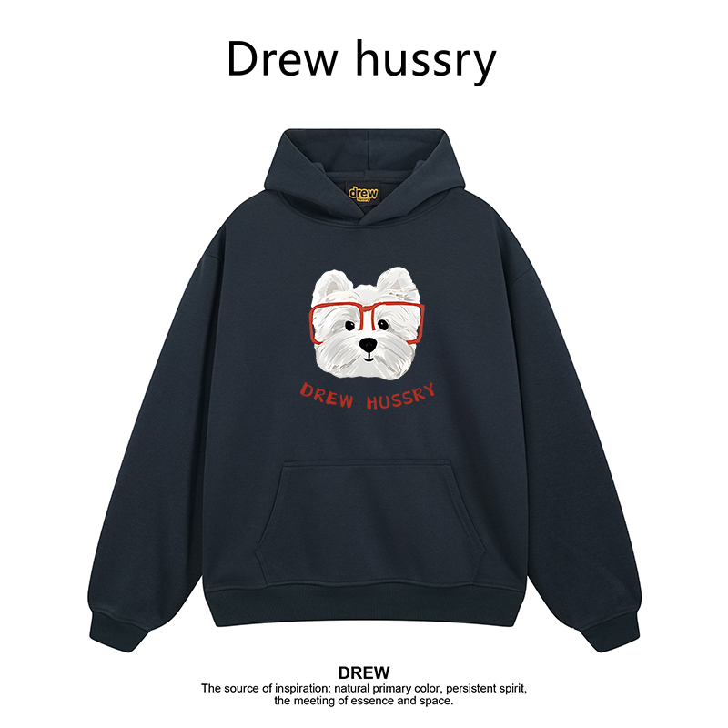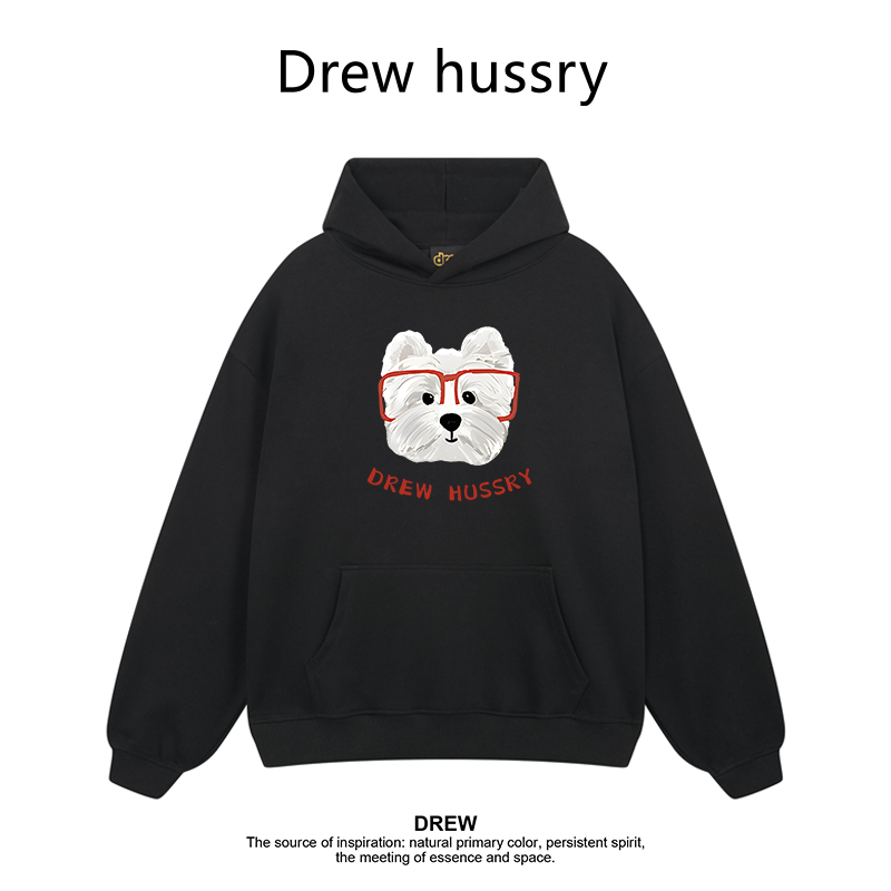 Drew美式 上衣 潮牌眼镜狗印花连帽卫衣秋冬加绒加厚宽松休闲情侣装