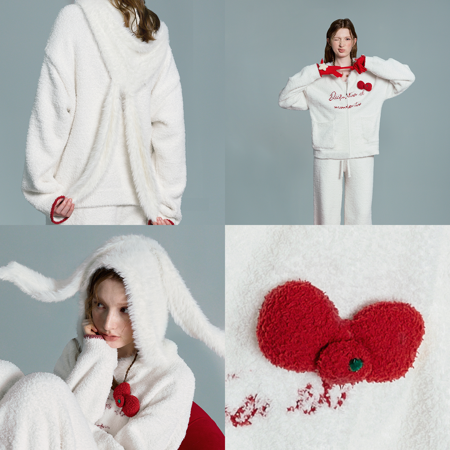 半边绒感蝴蝶结ins风保暖家居服套装 睡衣女冬季 礼物系列 yso