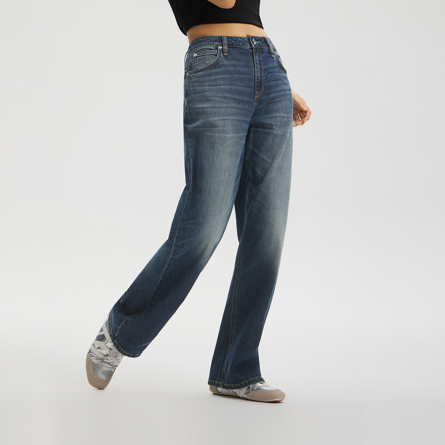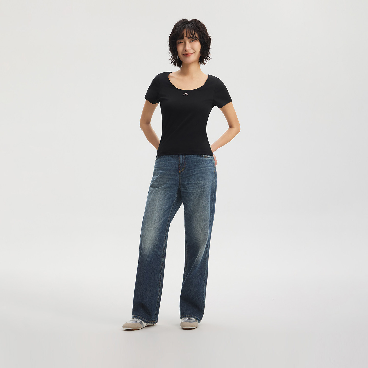 428舒适直筒牛仔裤 26夏新懒懒裤 Lee商场同款 深蓝女 张凌赫代言