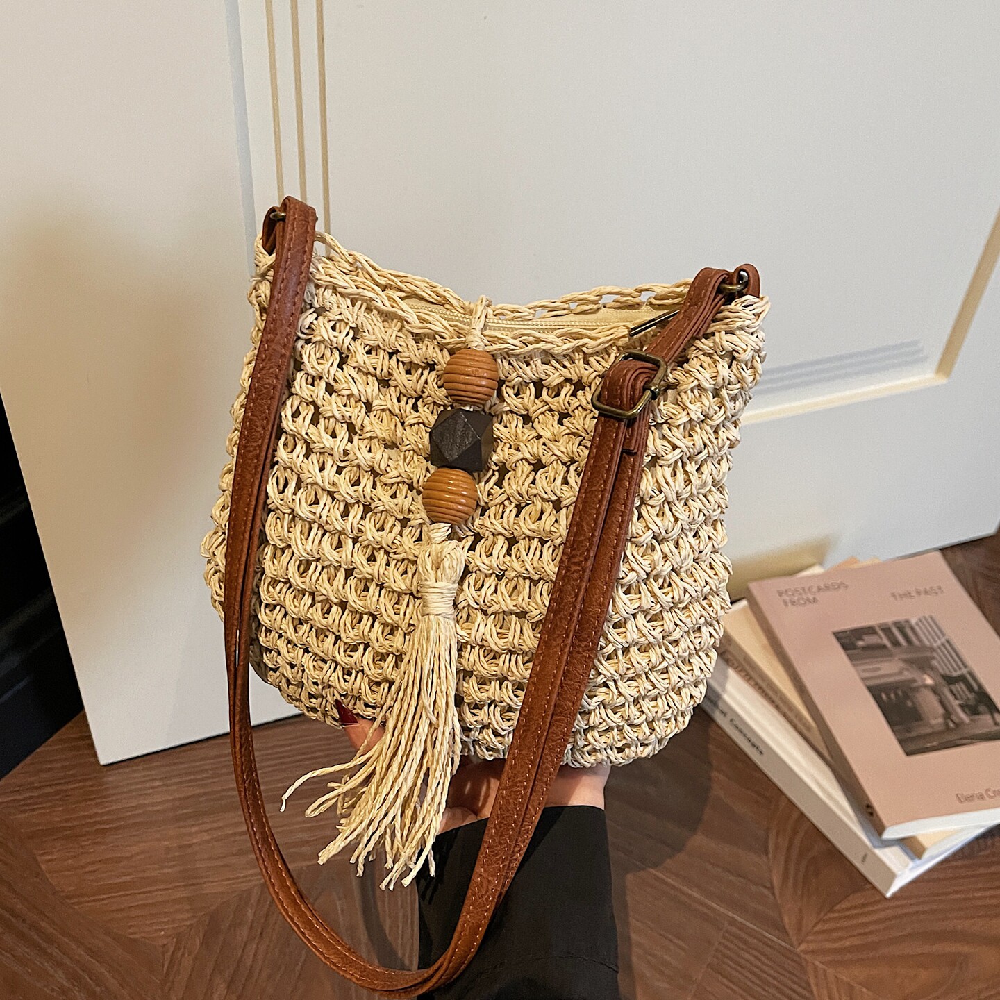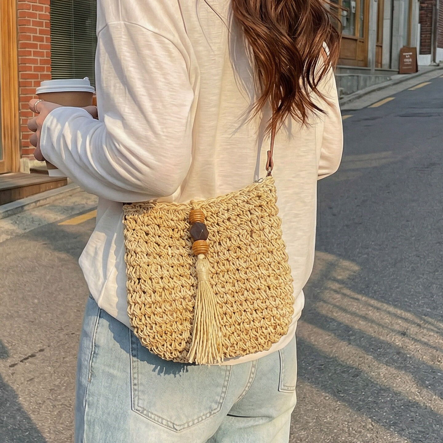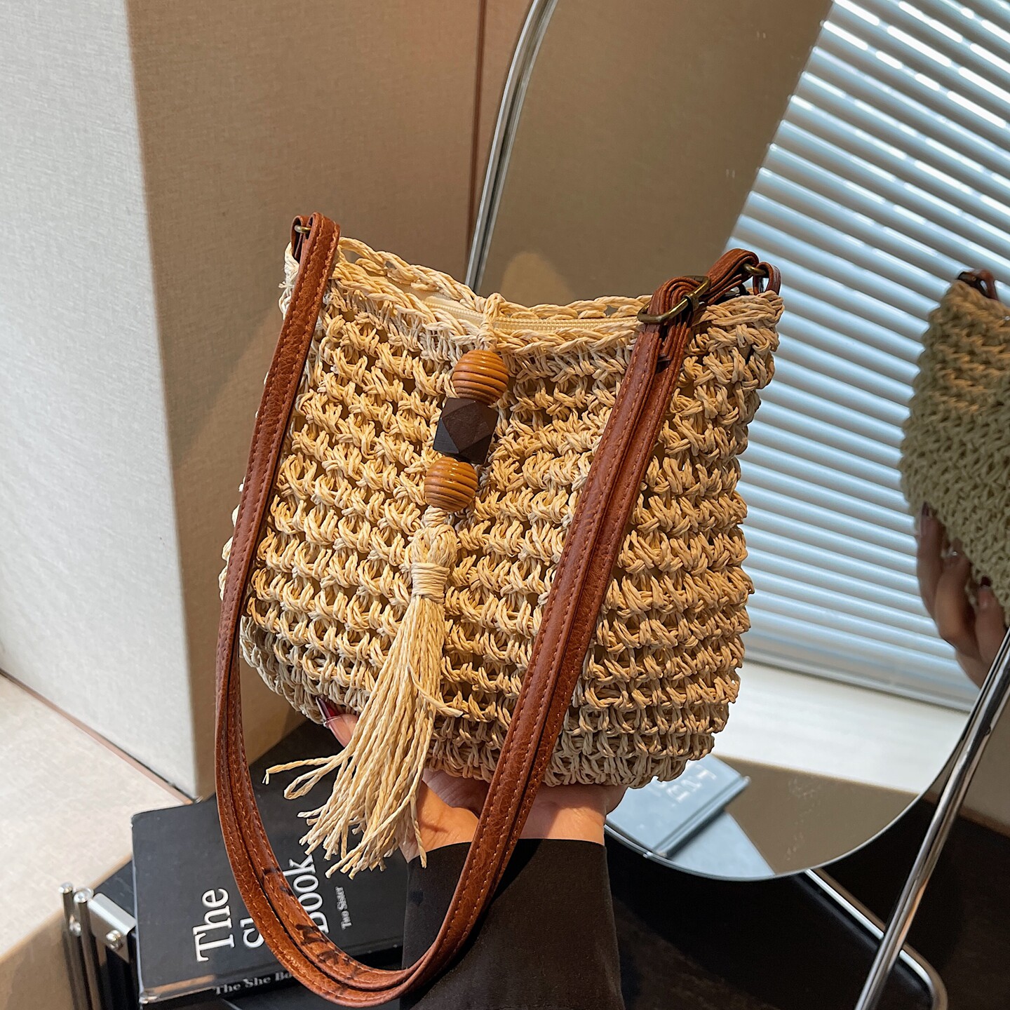 海边度假风沙滩包 休闲单肩斜挎包法式 编织草编包包女2026新款 夏季