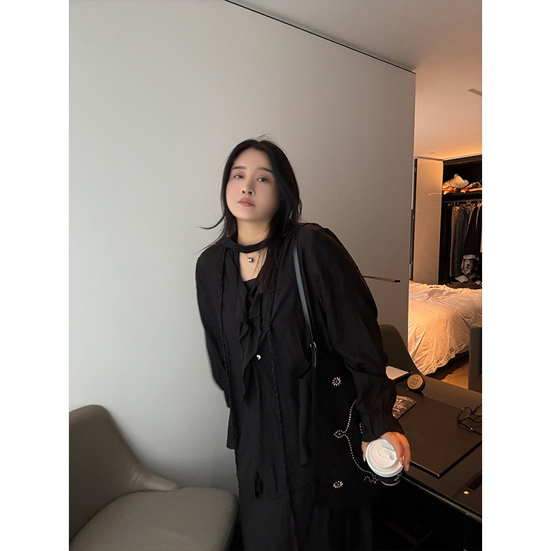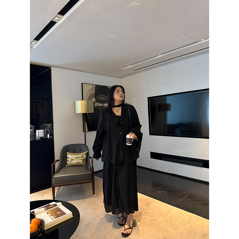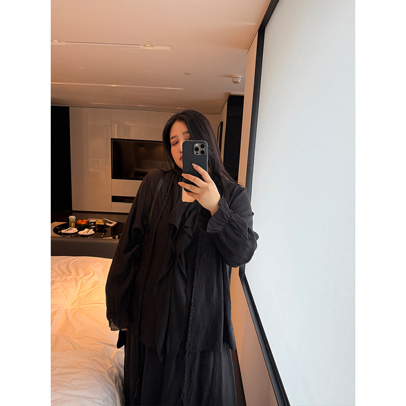 半身裙套装 铅笔小鑫大码 塔克褶花边荷叶领衬衫 重工CP 女装