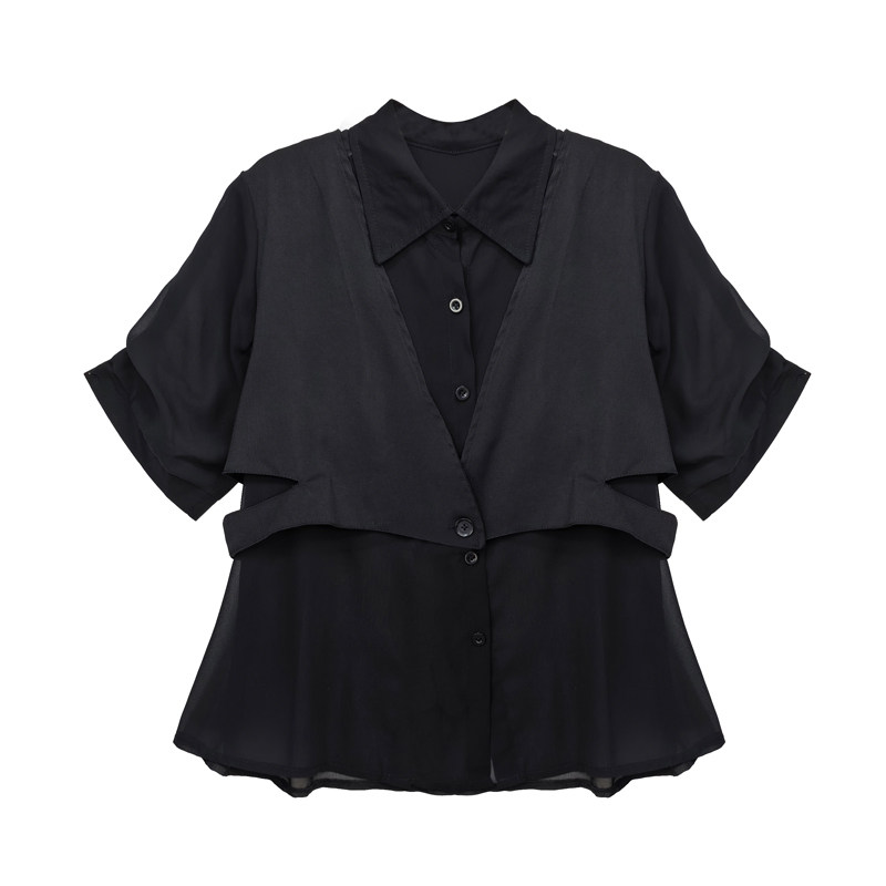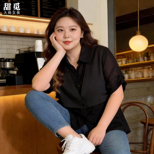 女装 衬衫 夏装 中长款 胖mm300斤胖妹妹宽松假两件马甲 甜觅特大码