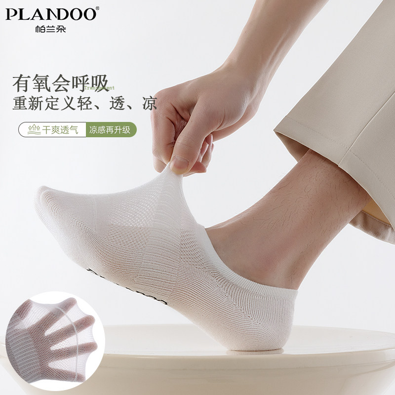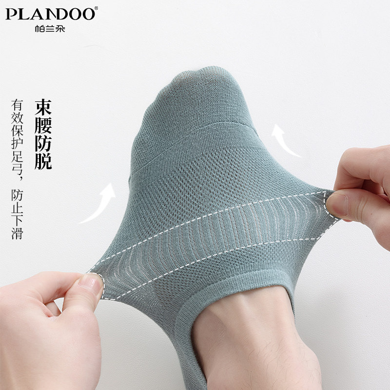7A抗菌防臭袜子男款 新疆棉短袜百搭纯色防滑防掉网眼透气船袜 夏季