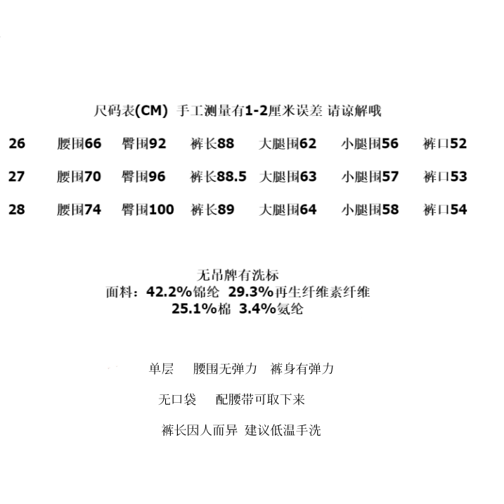南油欧货配腰带百搭黑色八分裤 新款 休闲裤 西装 女 3.4 裤 2620春季