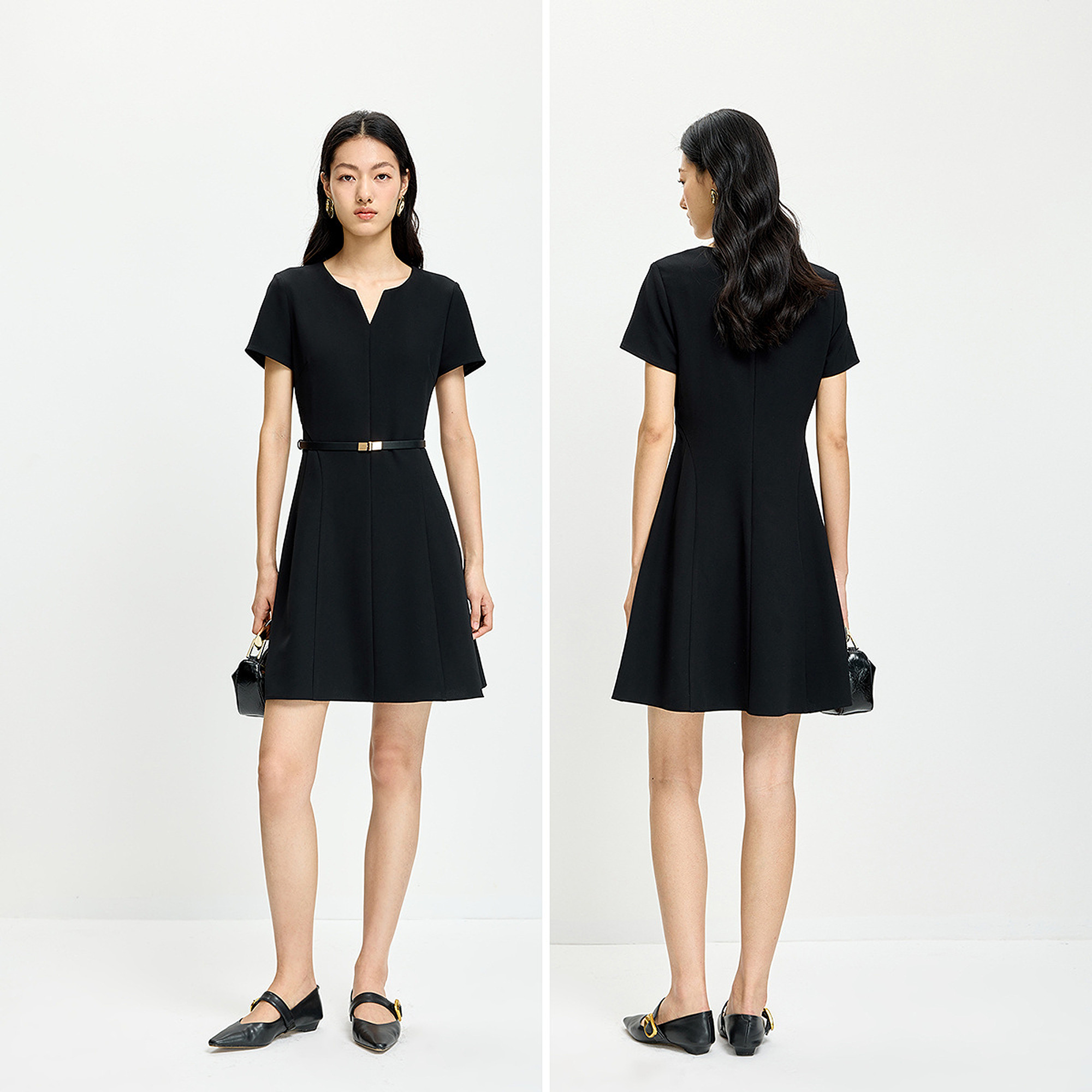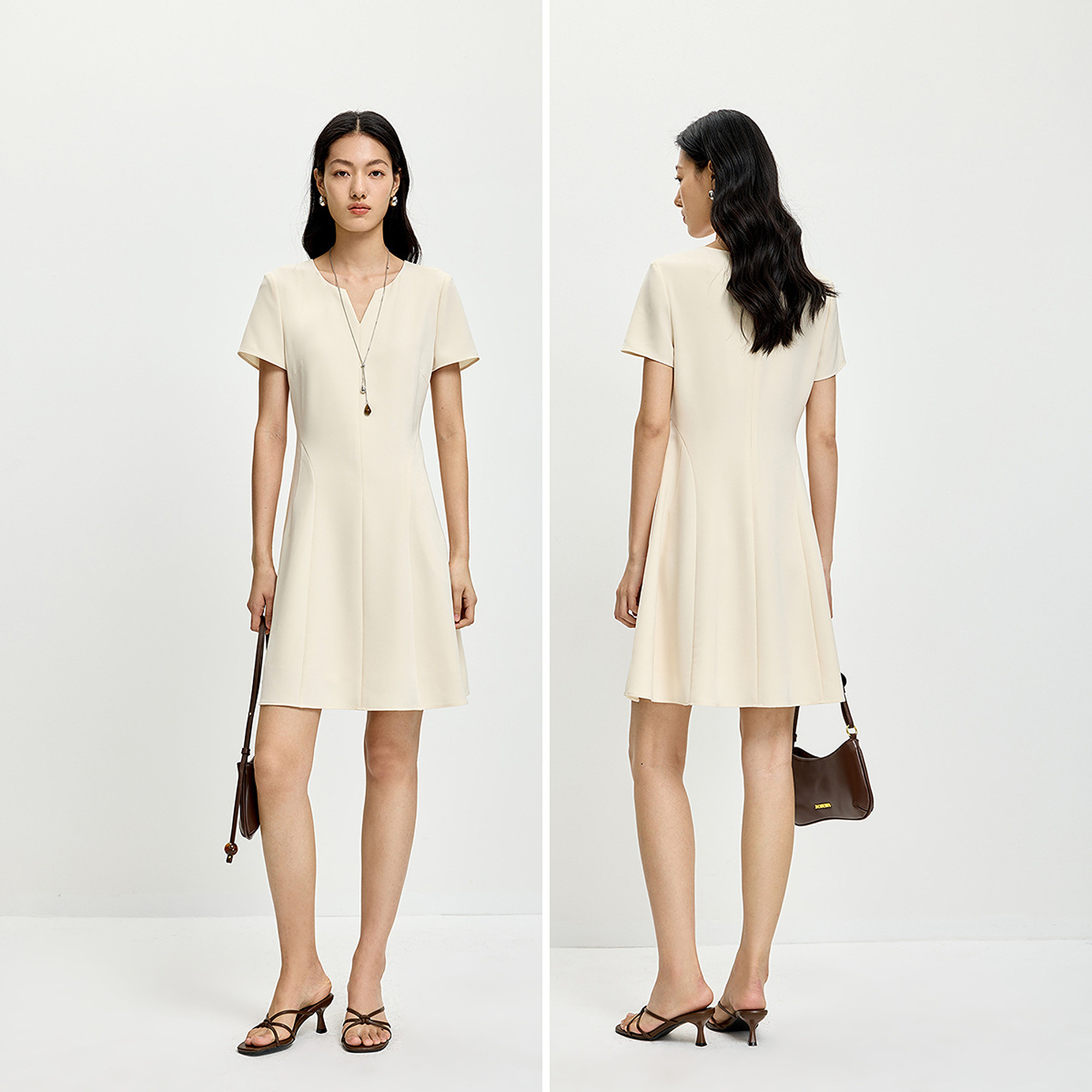 短袖 简约纯色圆领V领收腰休闲通勤修身 连衣裙 女装 LILY2026夏新款