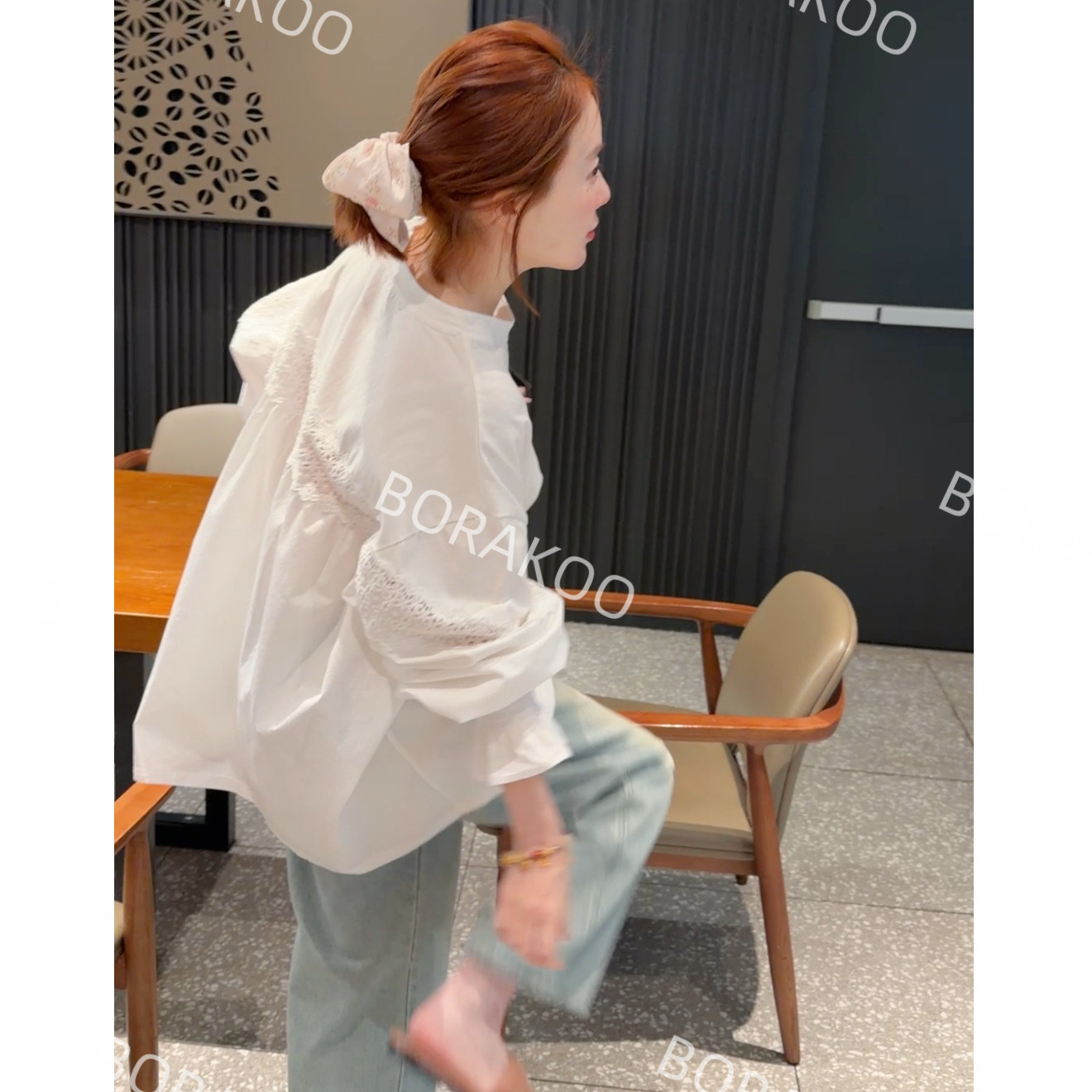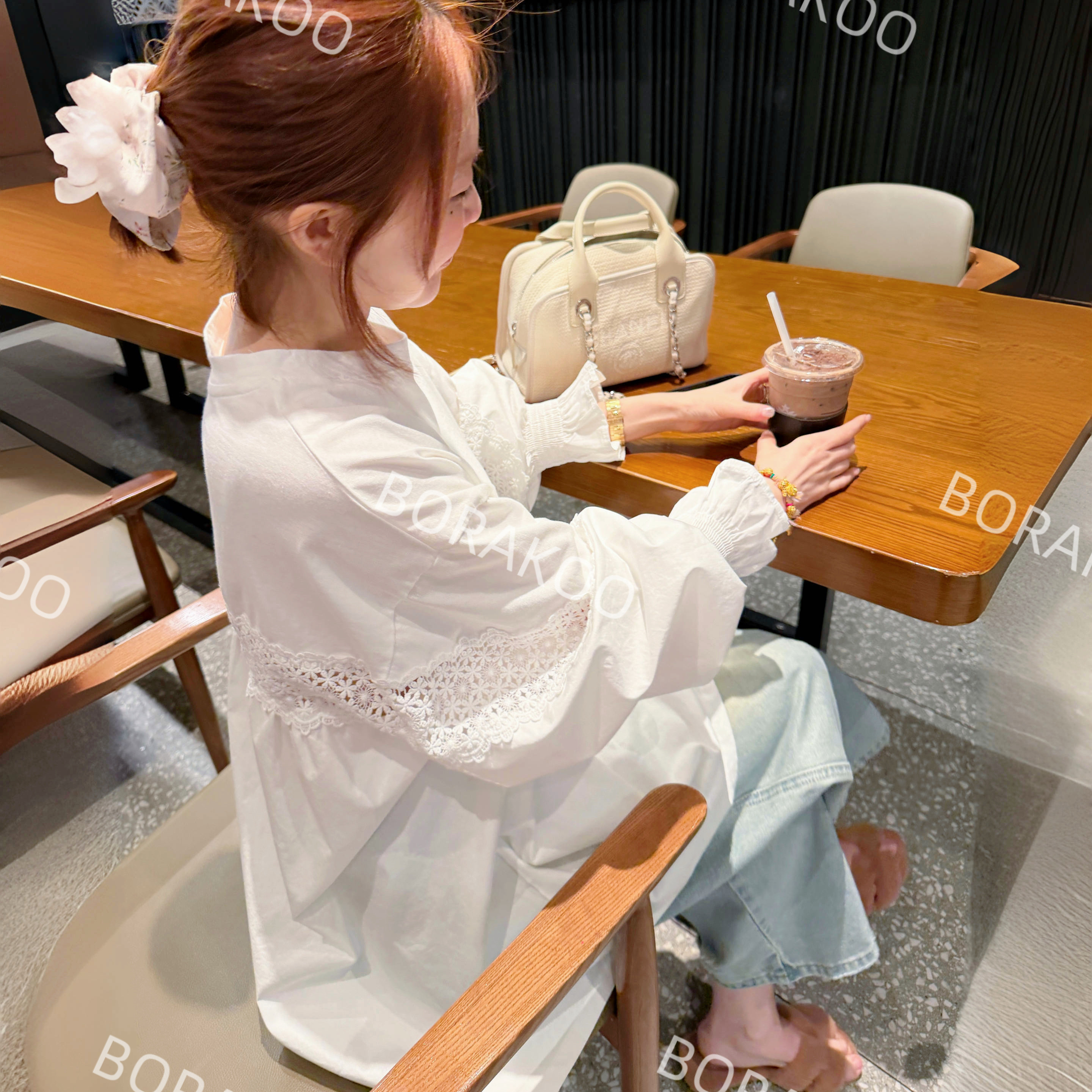 蕾丝拼接圆领T恤 喇叭袖 BORAKOO
