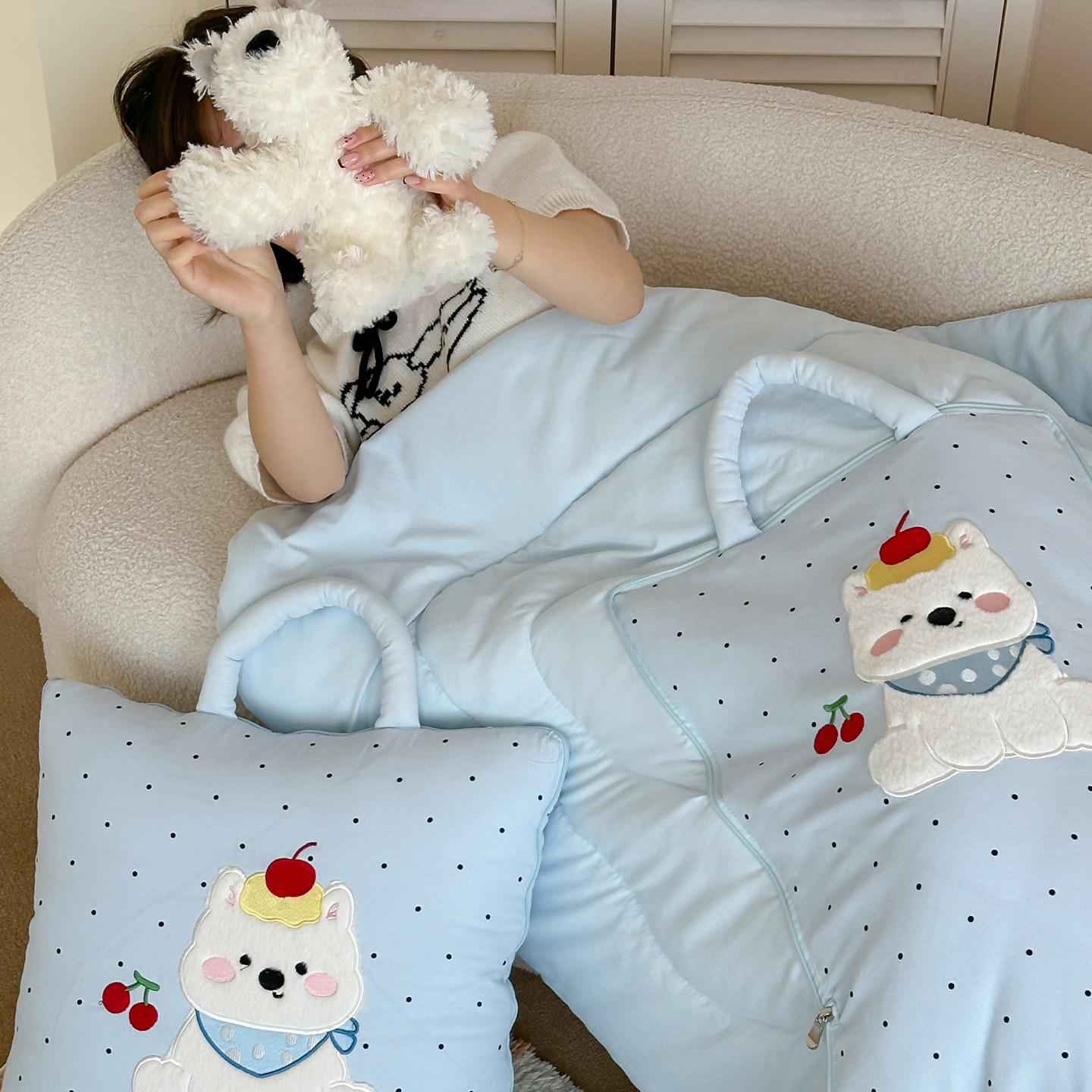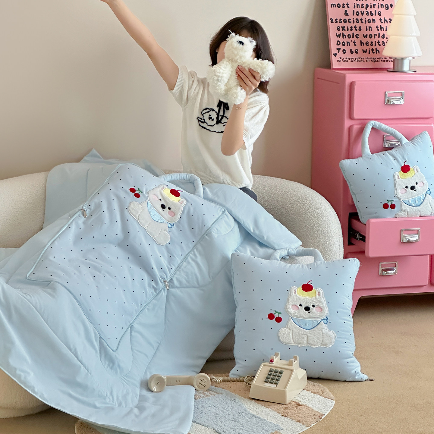 蓝色抱枕被子两用车子沙发靠垫可爱办公室靠背学生宿舍午休空调被