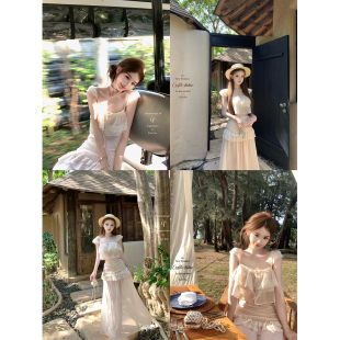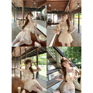 短裙时髦套装 迟伞伞26 ch1oe蕾丝短上衣褶皱长裙 粉色珊瑚信