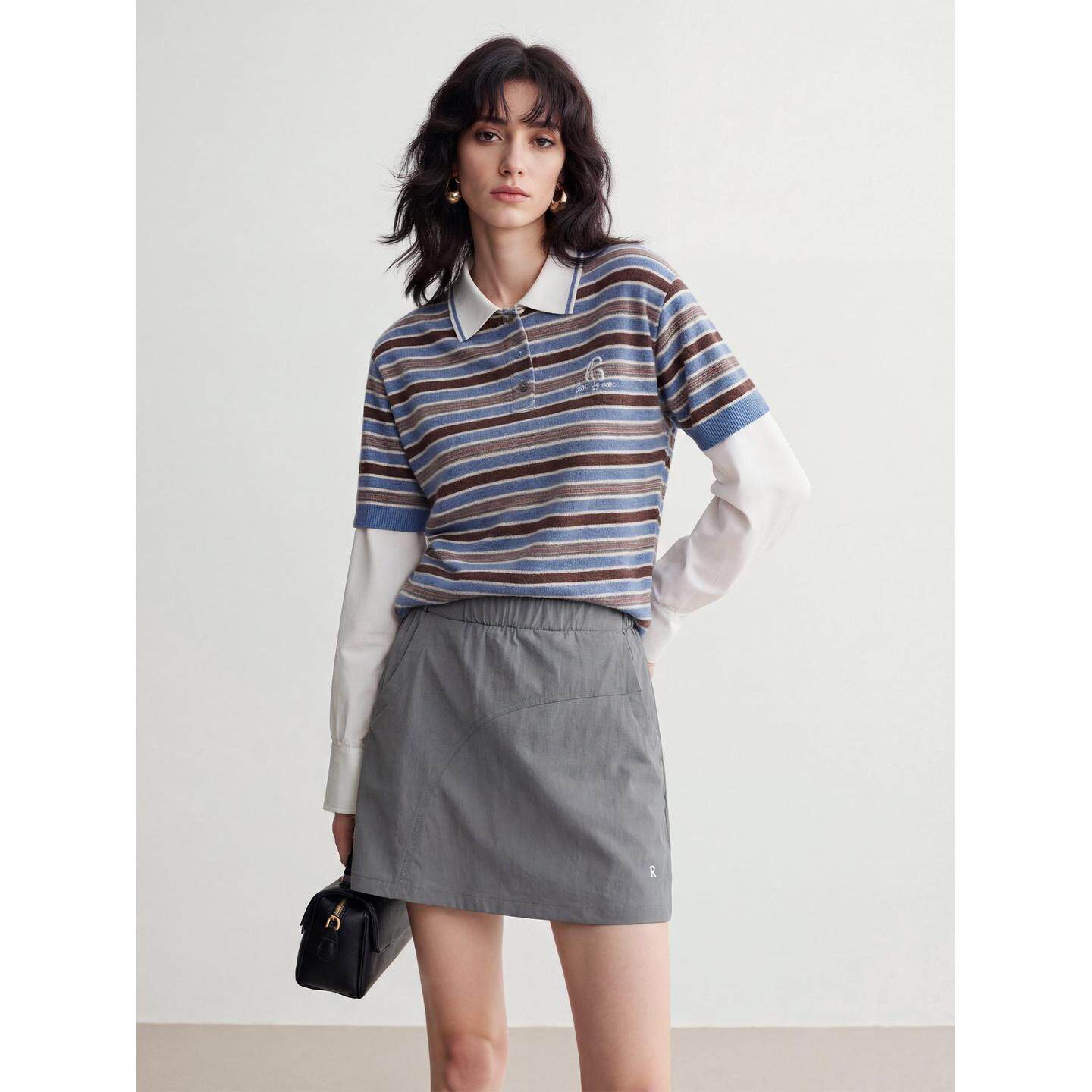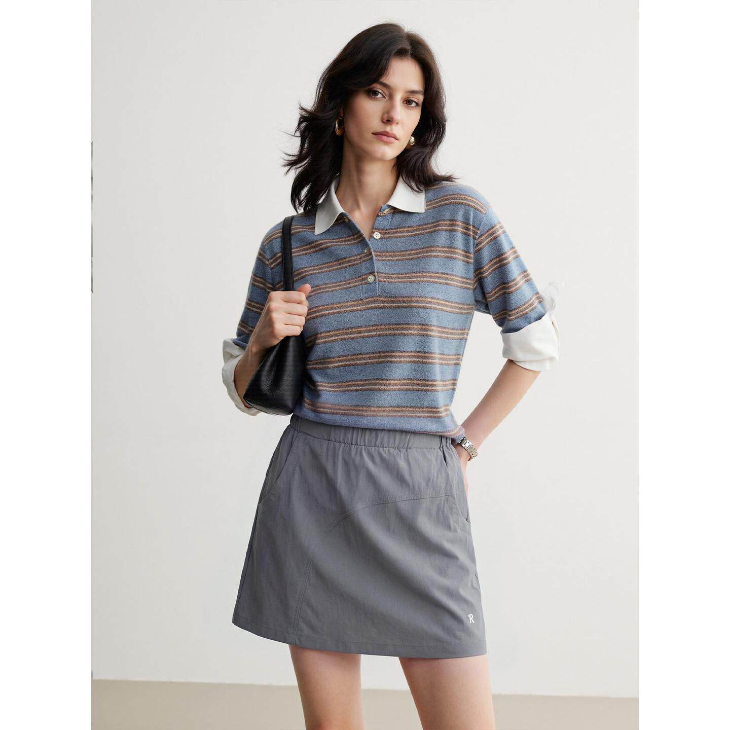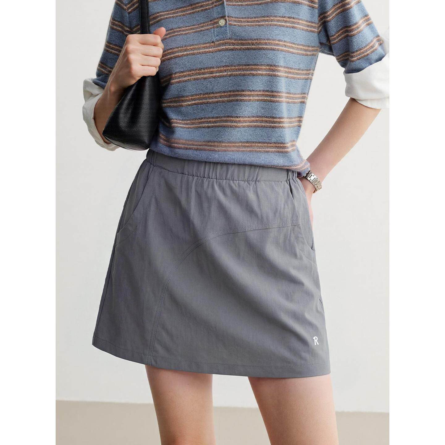 半身裙女夏季 百家好灰色山系工装 高腰A字网球短裙 House Basic