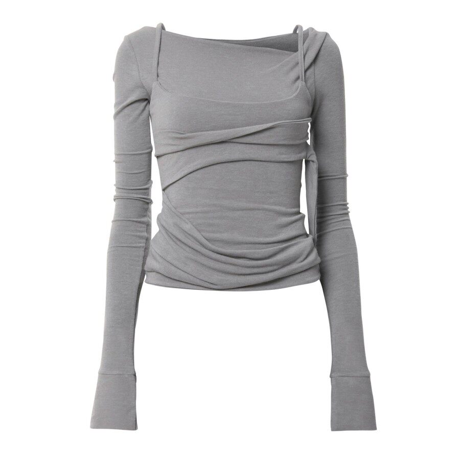 eihey诶嘿辣妹风分层不对称上衣纯色百搭褶皱休闲直筒半身裙套装