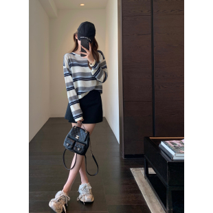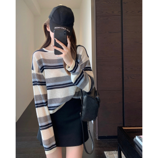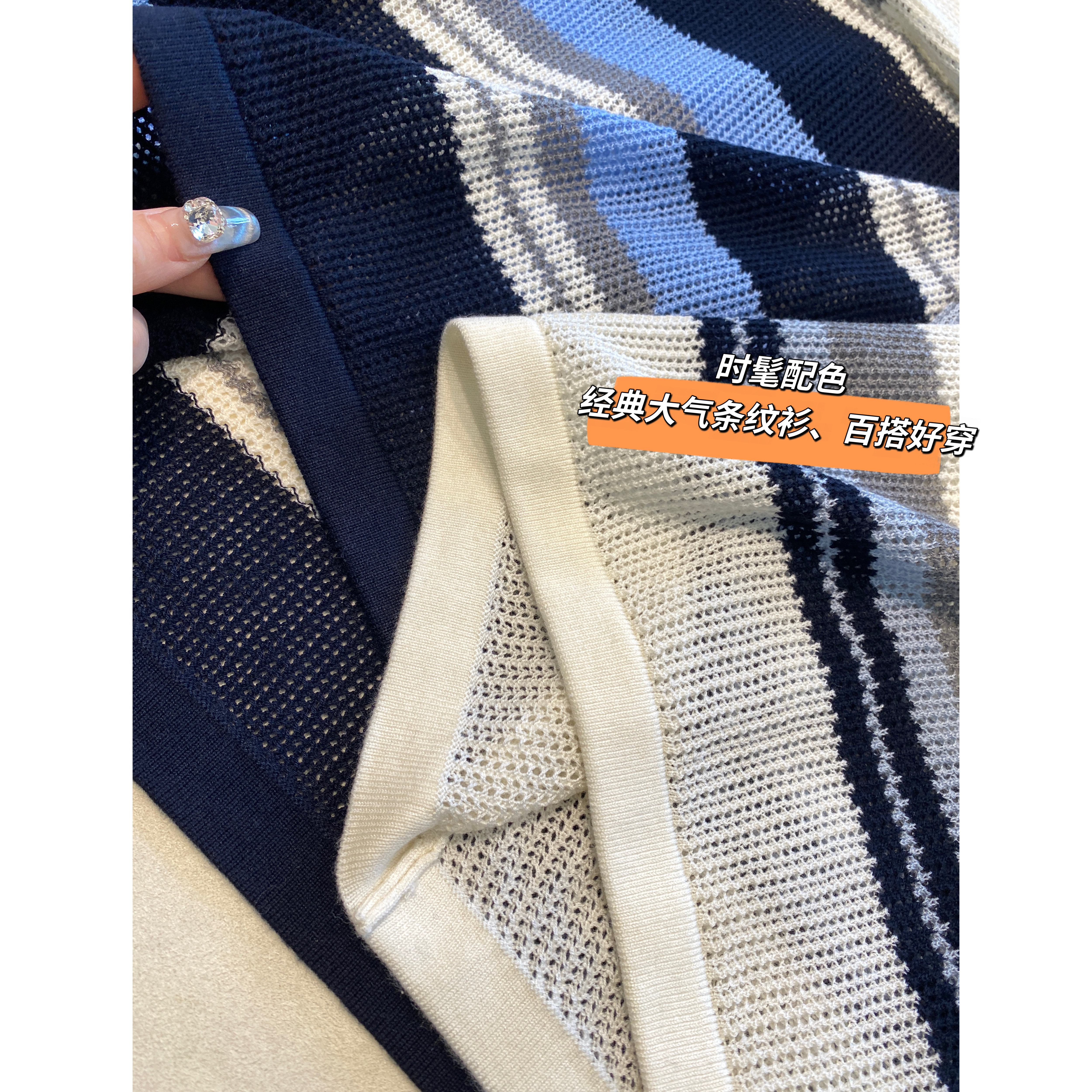 上衣女春夏2026新款 慵懒时髦 空调条纹长袖 针织防晒罩衫 AMR