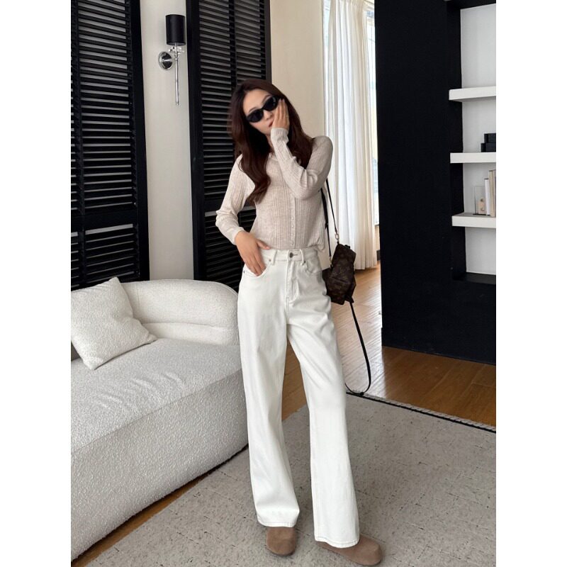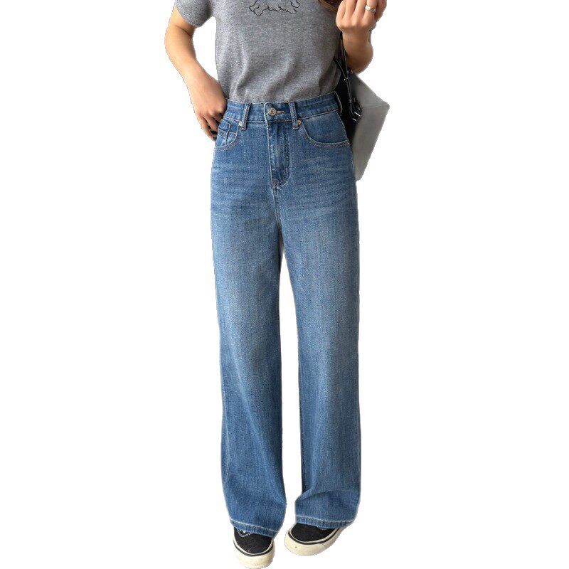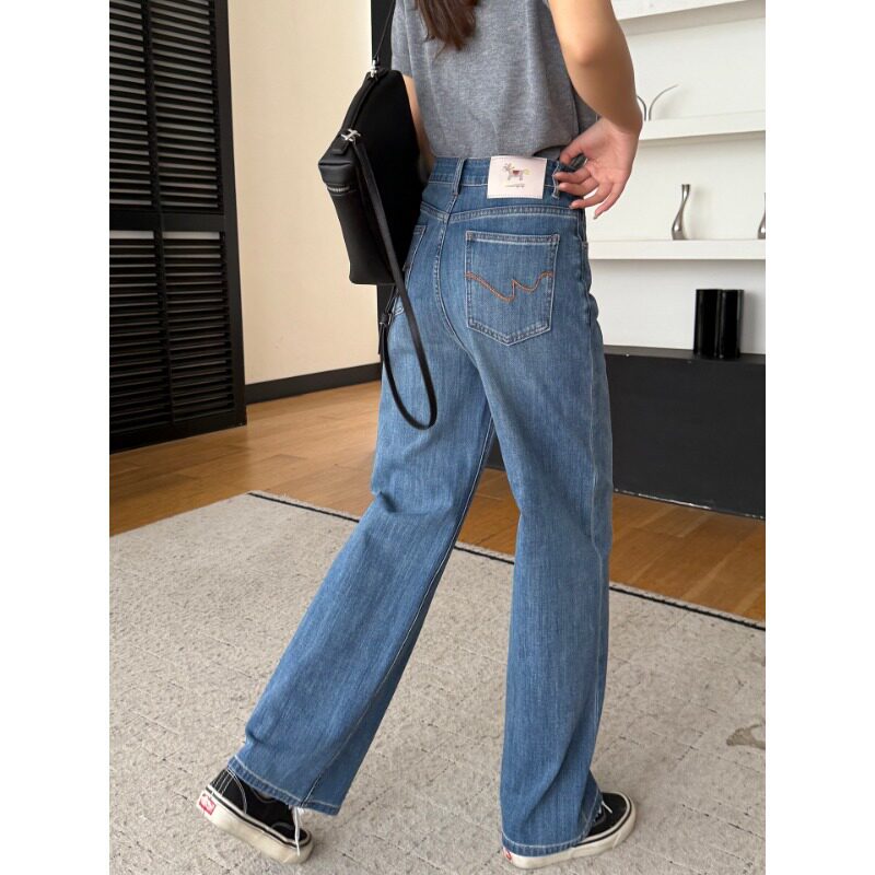 已自留 春直筒宽松显瘦拖地阔腿裤 窄版 女26新款 H022803 牛仔裤 好裤
