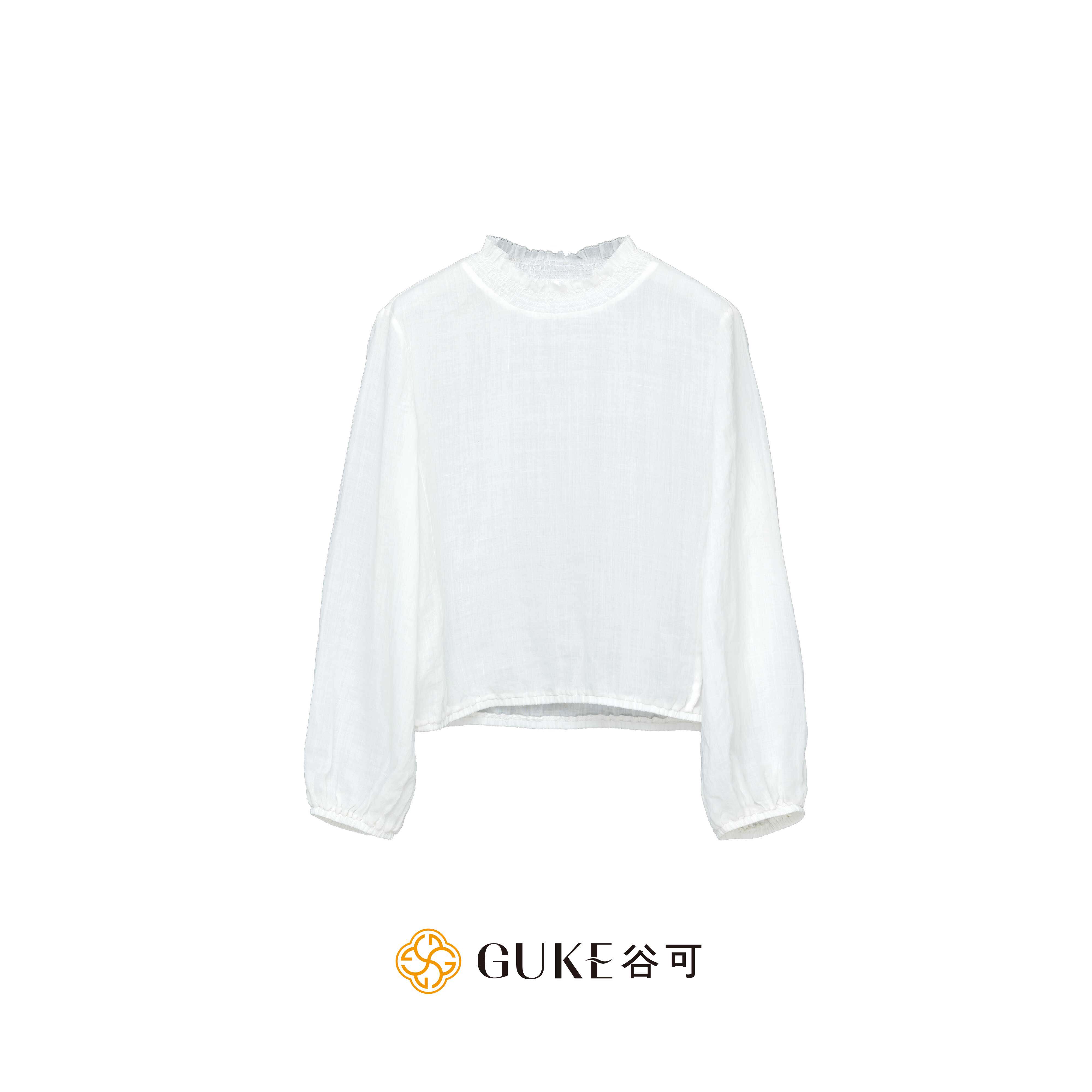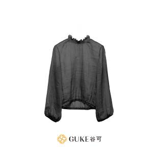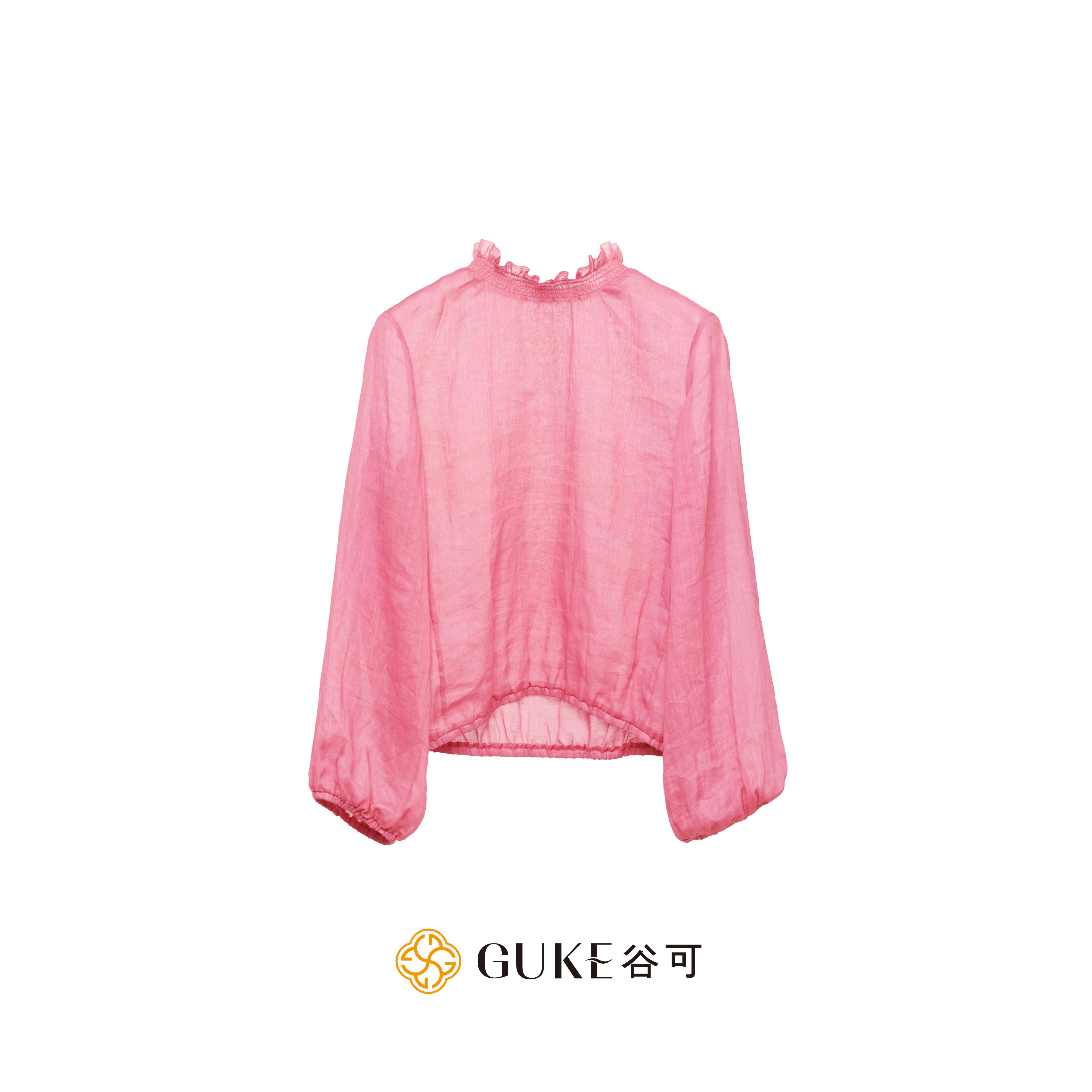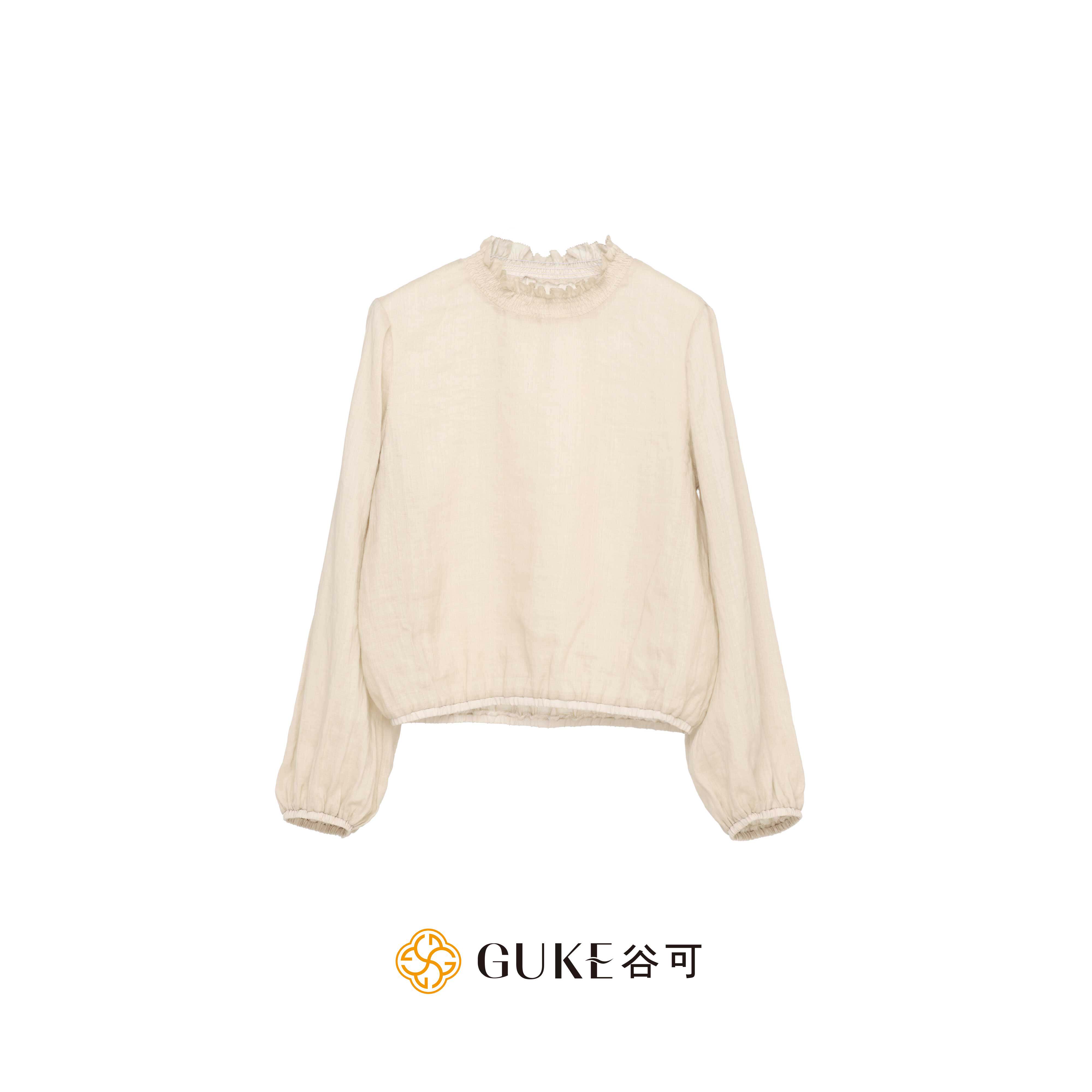宽松休闲气质简约浅杏色上衣 女长袖 GKE 谷可C1019温柔风苎麻衬衫