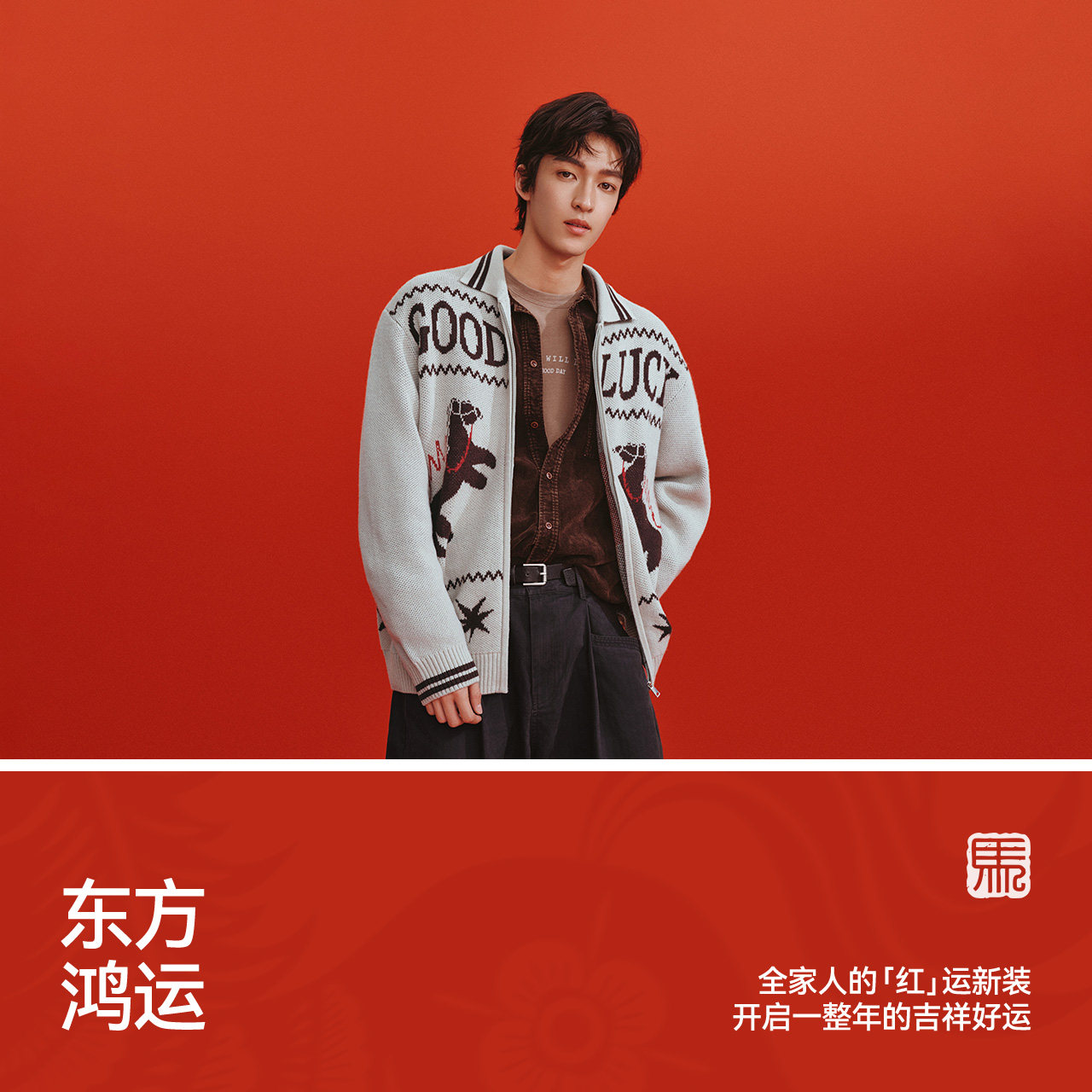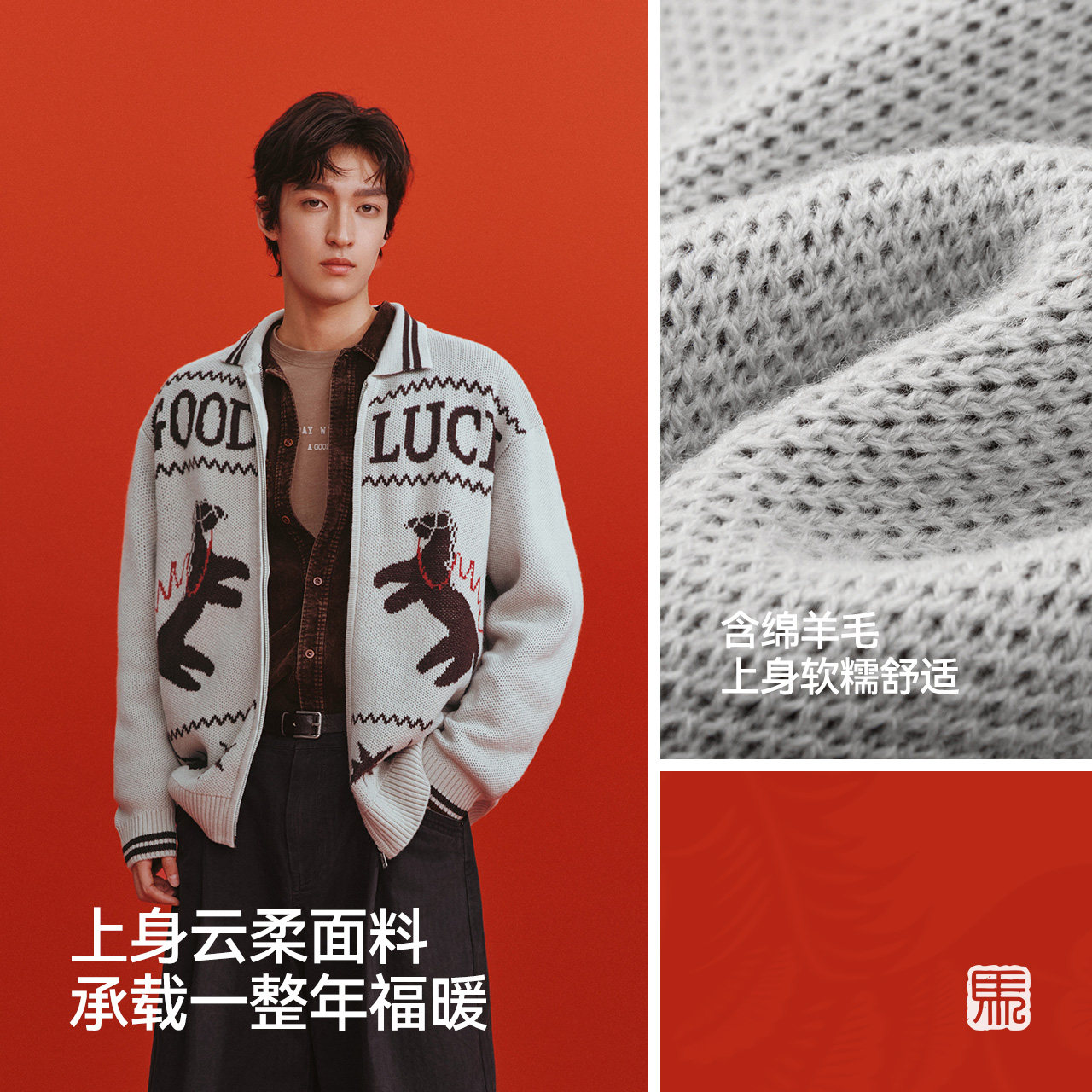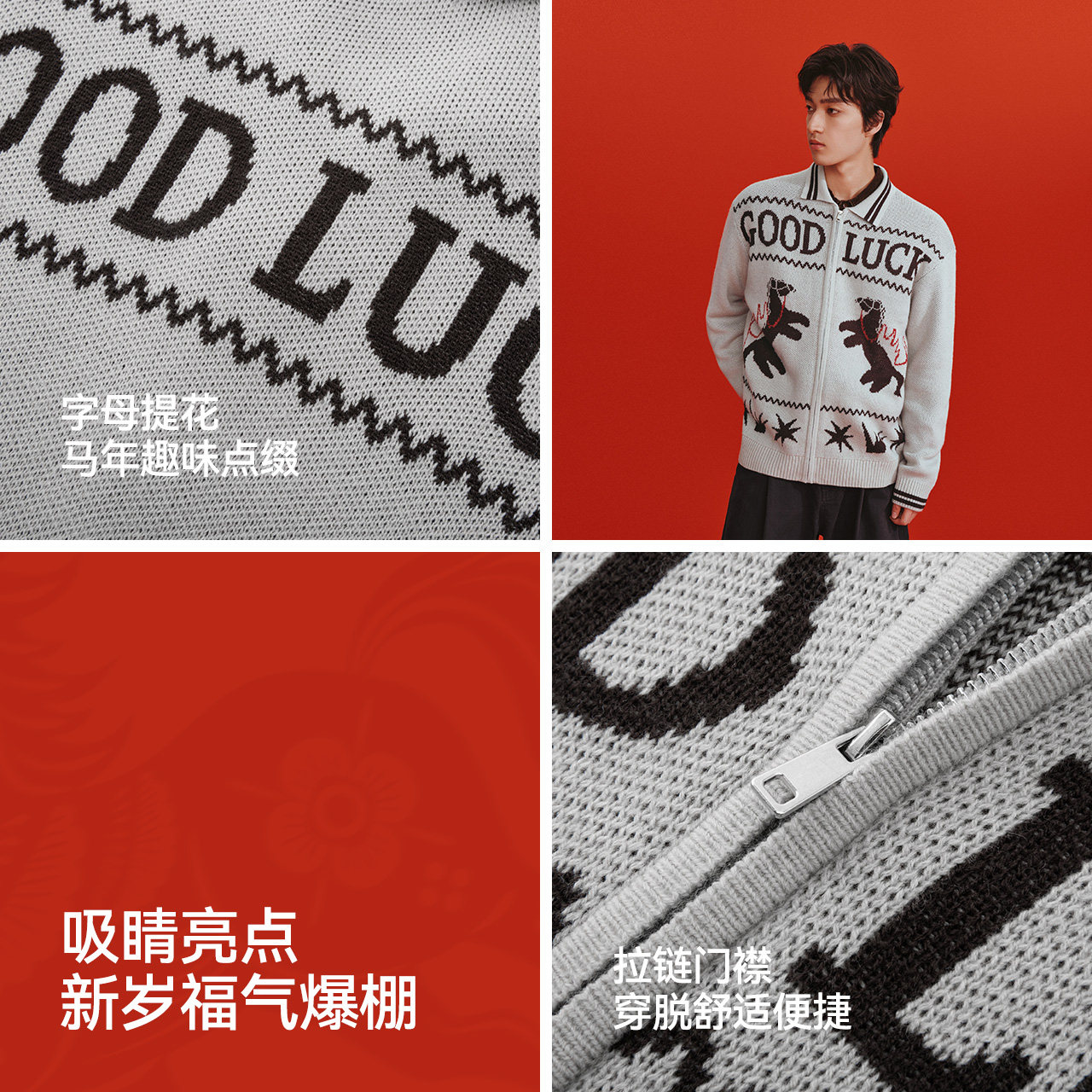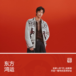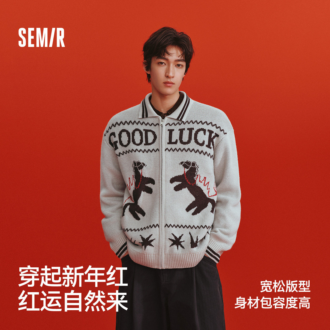 小马字母提花情侣款 宽松翻领拉链毛衣2026新款 外套 男春季 森马毛衫