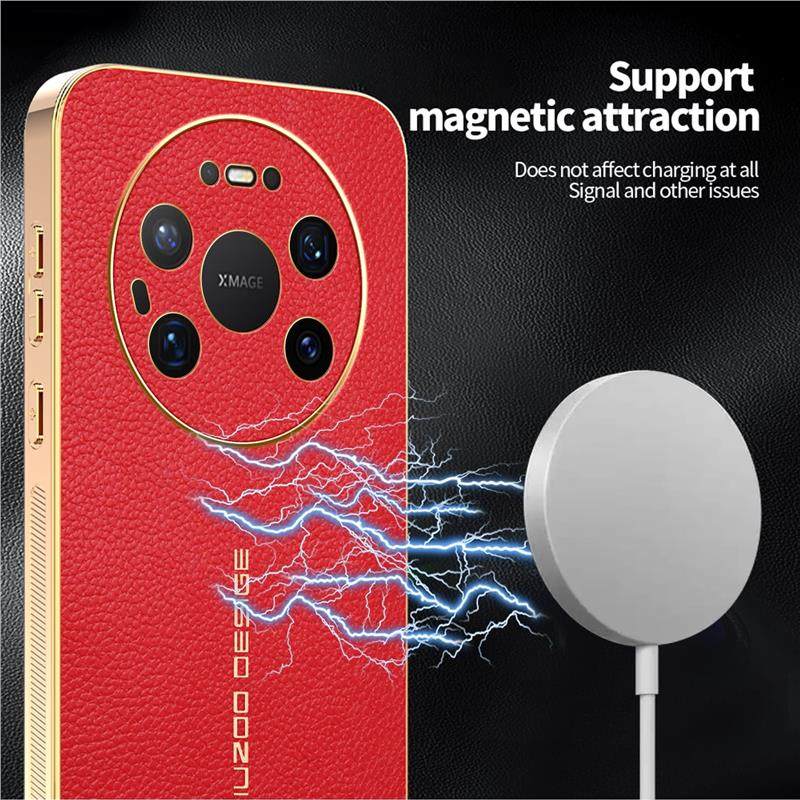 Air 适用华为Mate Max贵族荔枝皮纹磁吸壳Pura Pro 12防摔手机壳 ultra高级感电镀Nova