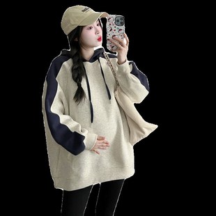 新款 加厚加绒抽绳连帽卫衣套头上衣套装 韩版 宽松大码 孕妇装 春秋装