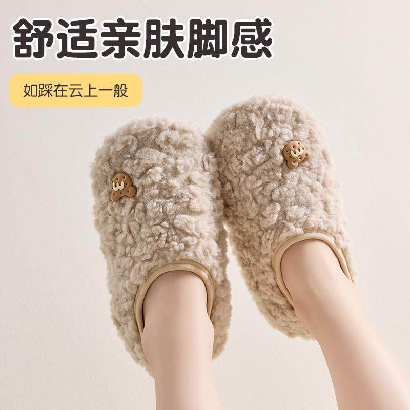 居家防滑情侣毛绒绒棉鞋 女冬ins时尚 男 可爱圣诞麋鹿棉拖鞋 细细条