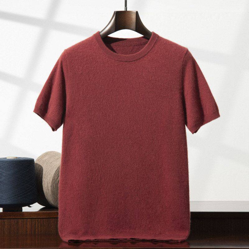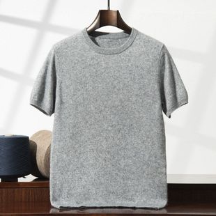 山羊绒衫 休闲日常风套头短袖 圆领针织五分袖 新款 内搭春秋冬季 男式