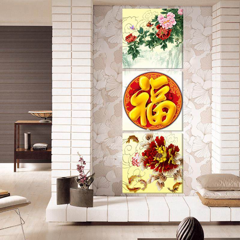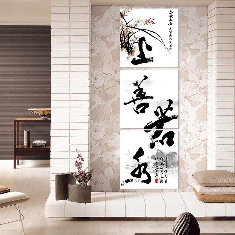 沙发背景墙挂画竖版 现代简约客厅三联壁画 无框画 饰画字画 玄关装