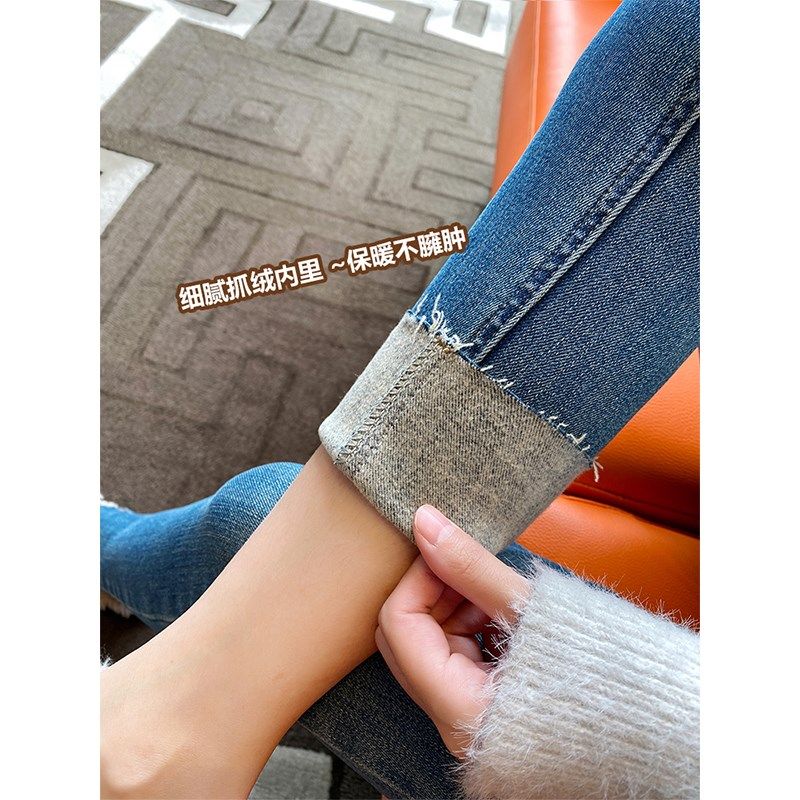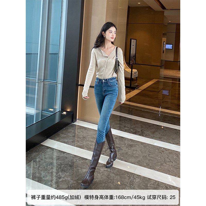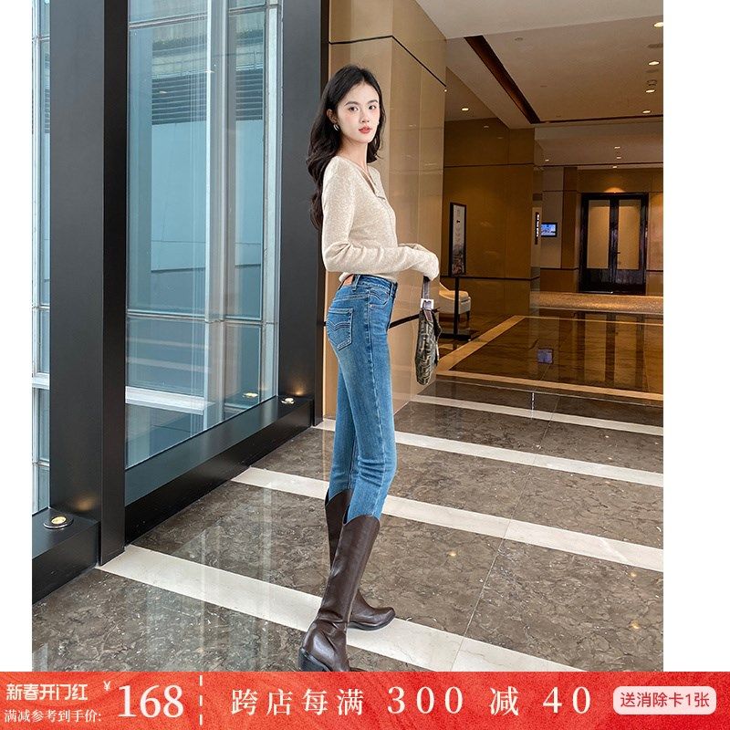 女中蓝色紧身显瘦九分铅笔裤 提臀显瘦 高腰小脚牛仔裤 新款 子 春季