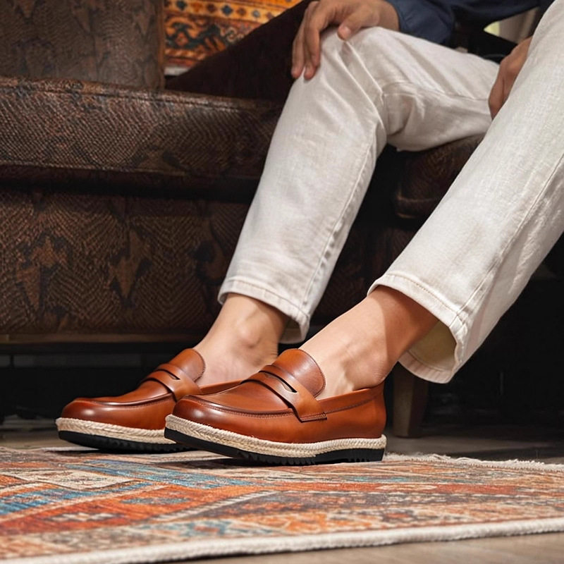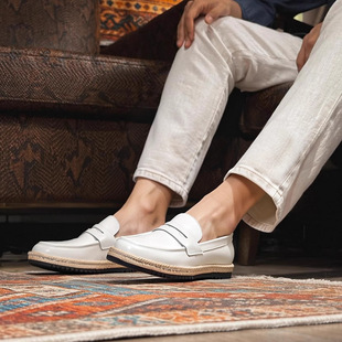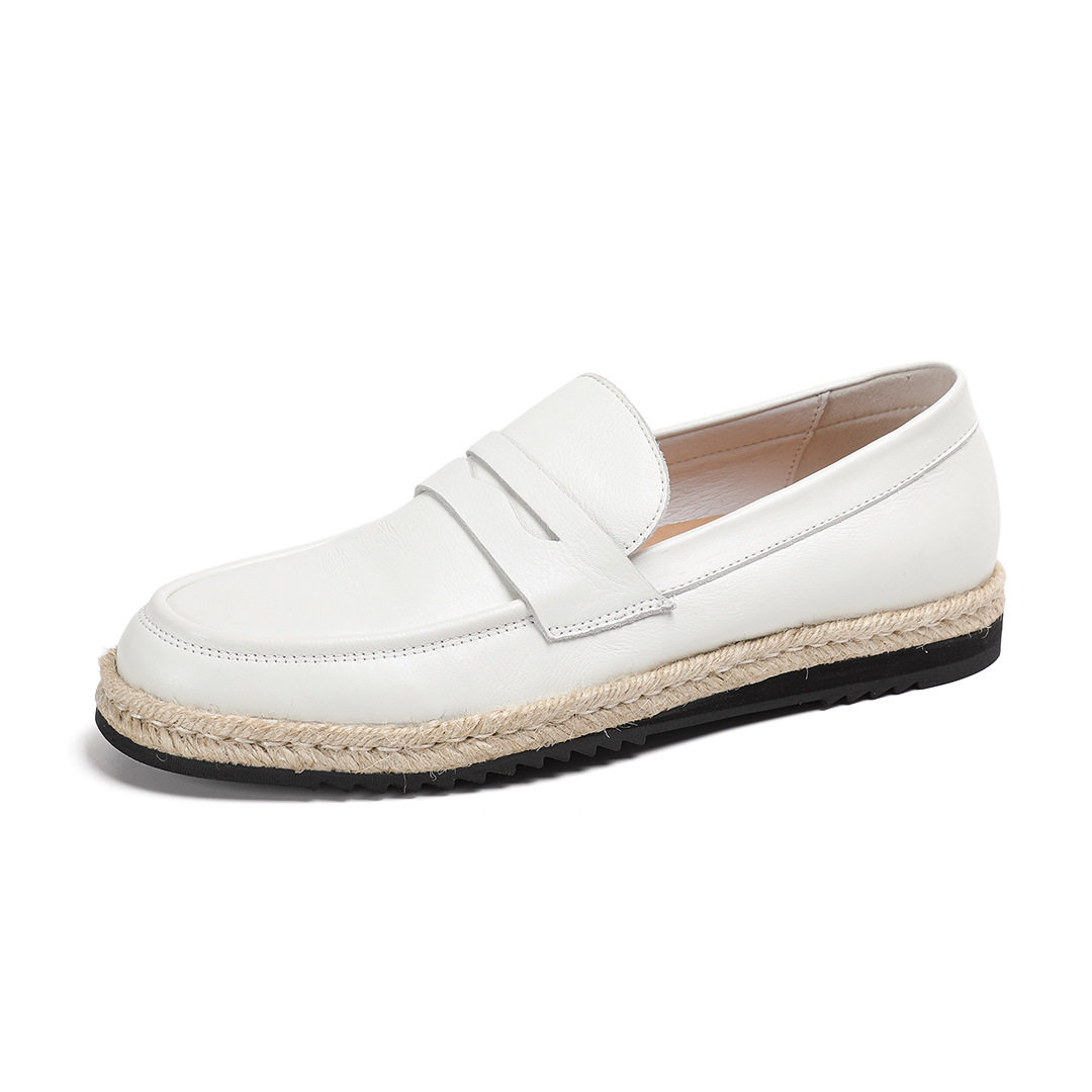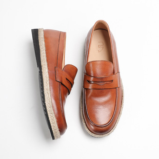 头层牛皮手工麻绳编织一脚蹬英伦豆豆鞋 男式 乐福鞋 2026春新潮个性