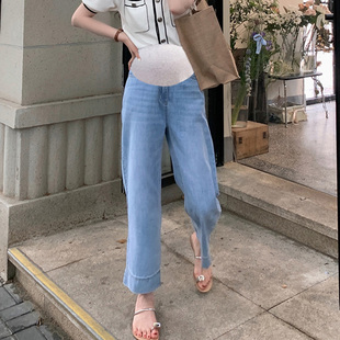垂坠孕妇牛仔裤 薄款 直筒裤 外穿宽松九分阔腿裤 孕妇裤 夏装 子女夏季