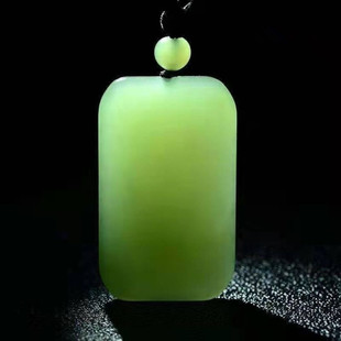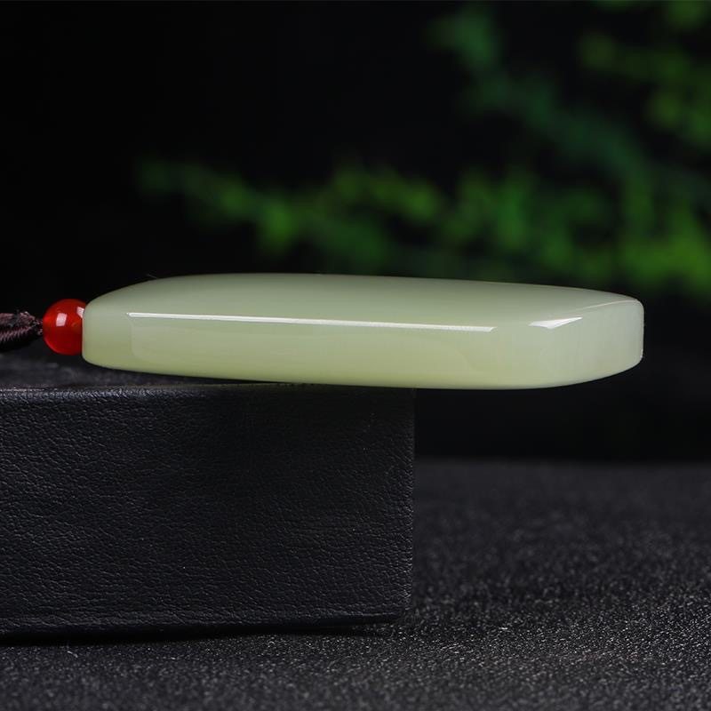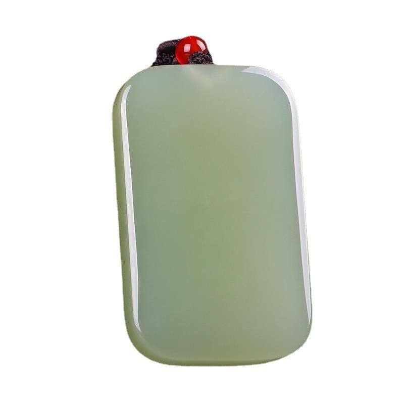天然阿富汗玉青白色无事牌吊坠圆润新疆和田玉牌子平替玉挂件