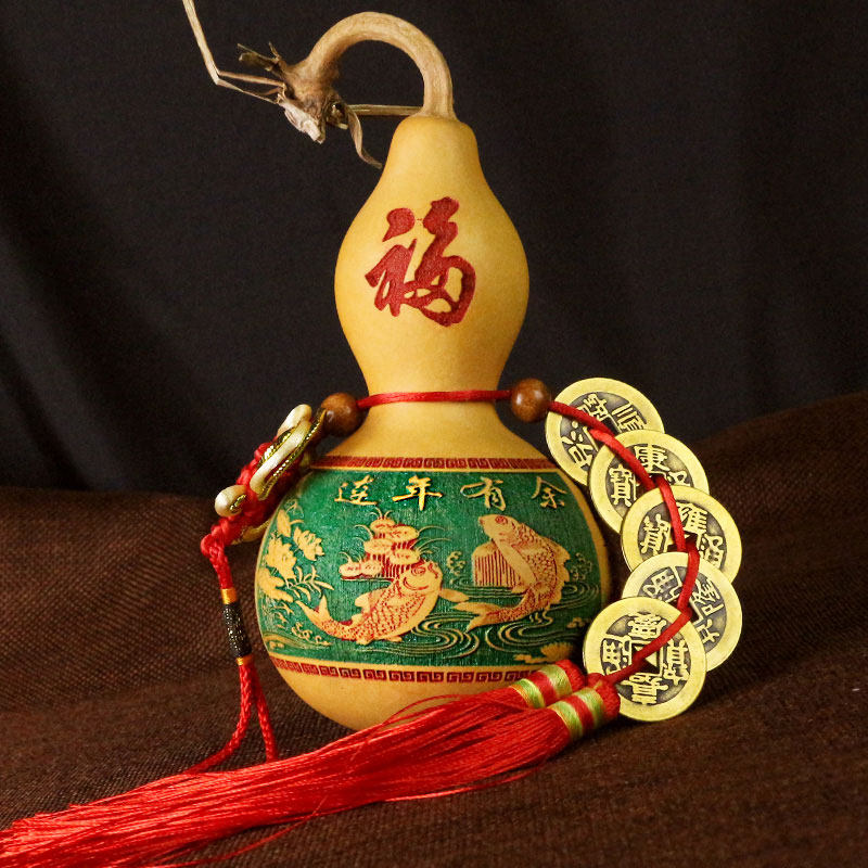 风中国结水文玩福字开口天然特大小葫芦挂件饰礼品木胡芦客厅摆件