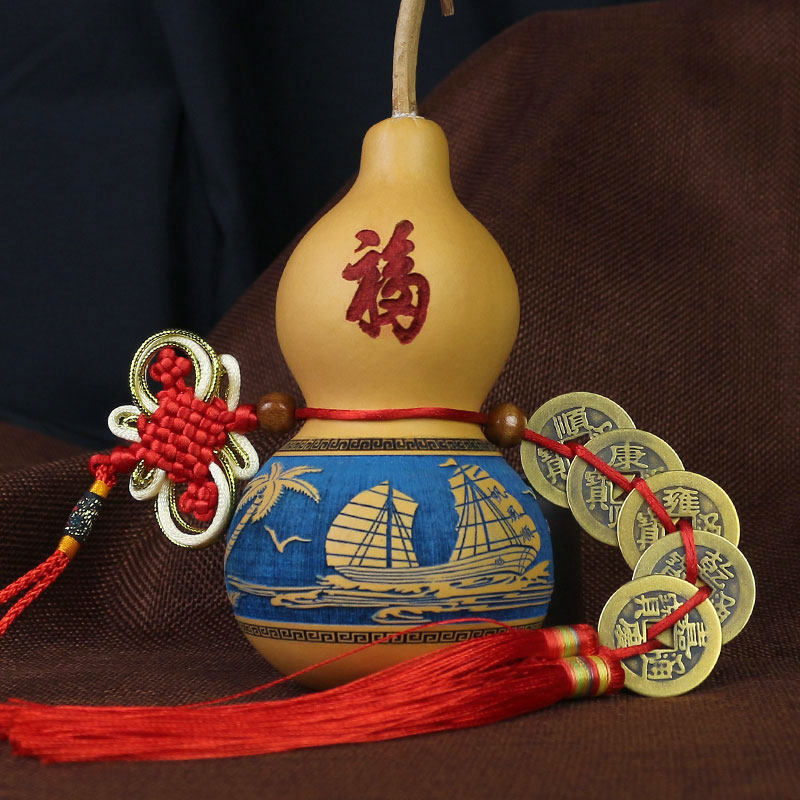五帝钱门对门铜葫芦真品摆件人财两旺吉祥结挂件入户镇宅化解风水