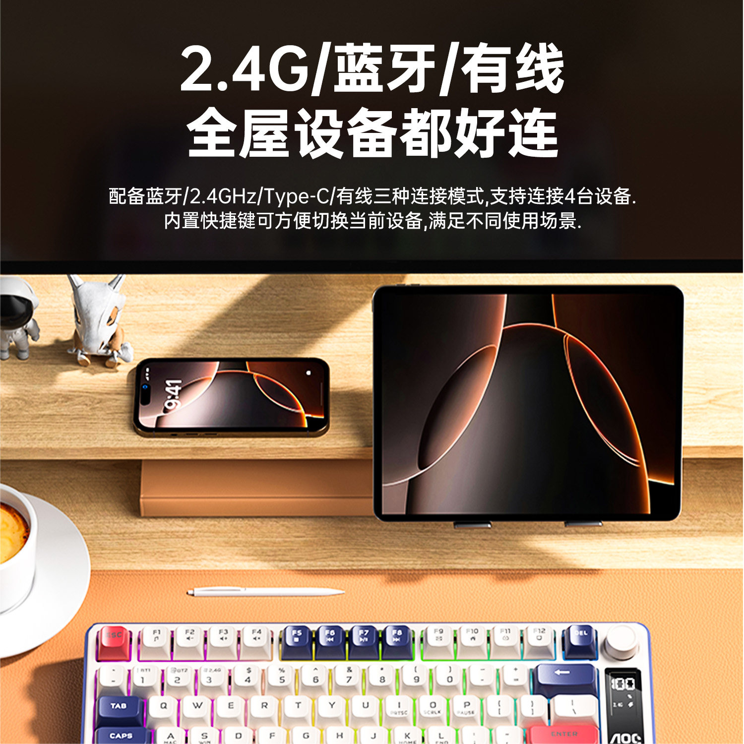 AOC 三模键盘机械手感静音游戏电脑办公RGB带屏 GK300无线键鼠套装