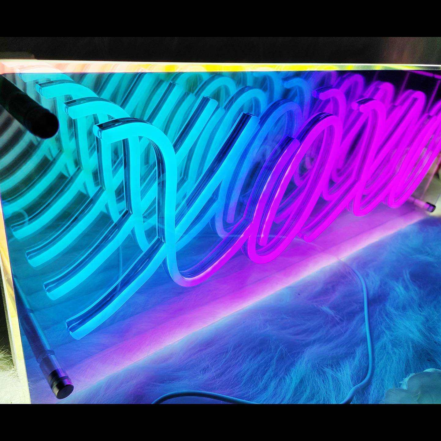 跨境热销LED霓虹灯千层镜XOXO字母无限深渊镜造型氛围灯一灯两用