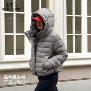 太平鸟90白鸭绒宽松龟背连帽泡芙羽绒服女冬新款 15D排骨羽绒