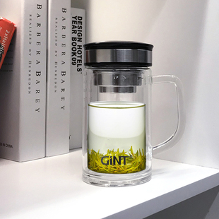 嘉特双层玻璃杯带茶隔商务办公杯茶杯340ML便携大容量