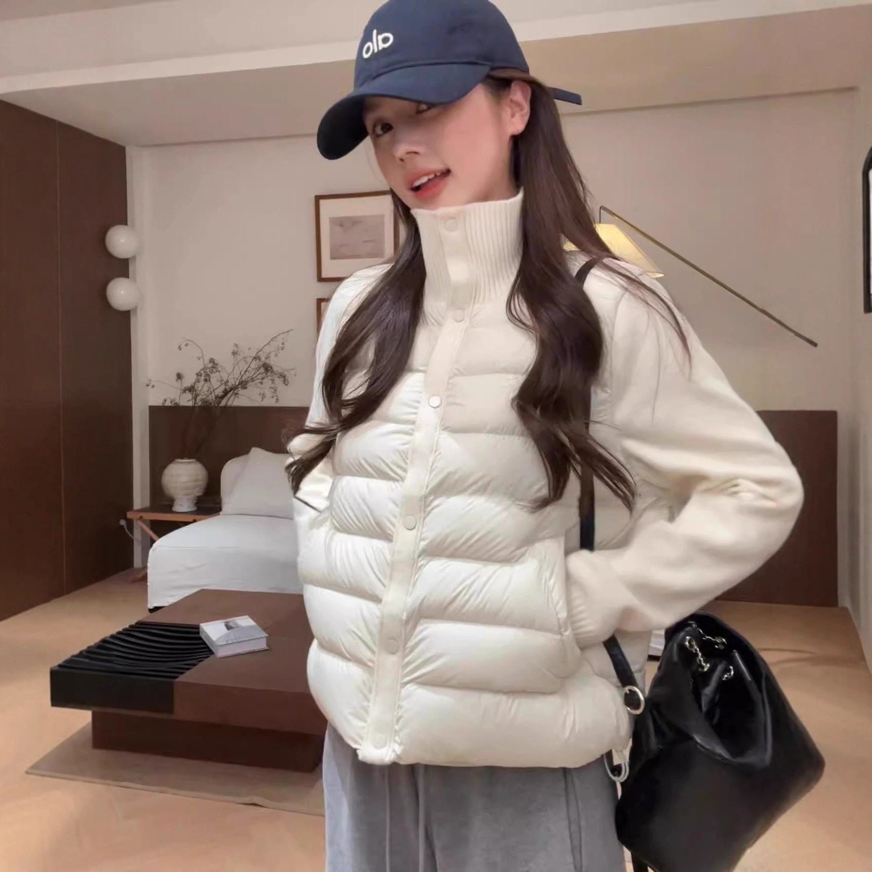 保暖外套魔术贴设计中长款 加厚时尚 外套 2025冬季 鸭鸭羽绒服女长款