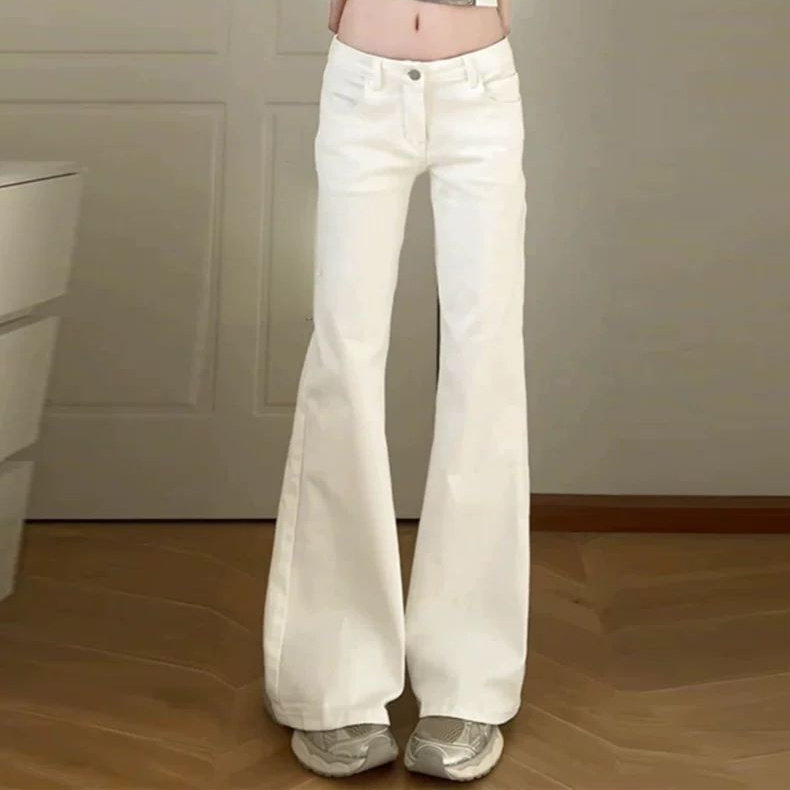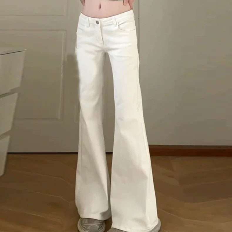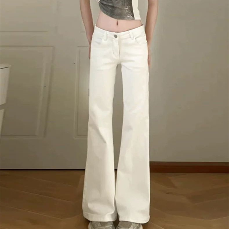 女2026春季 复古宽松显瘦马蹄长裤 韩版 美式 潮 新款 白色微喇叭牛仔裤