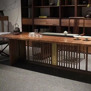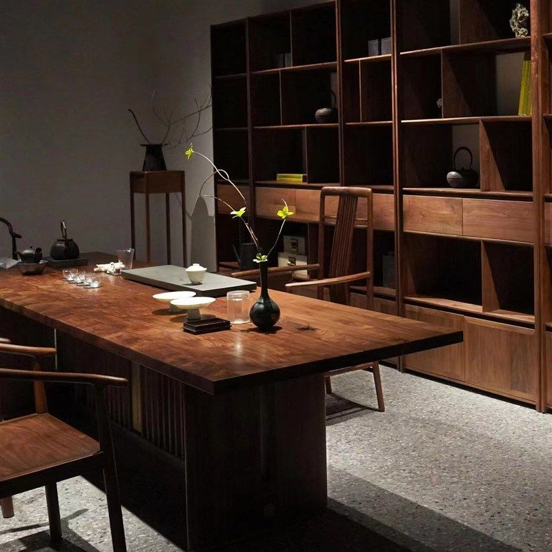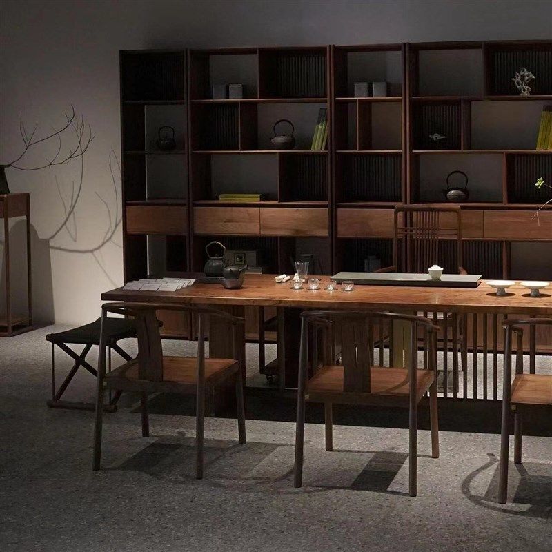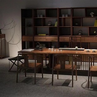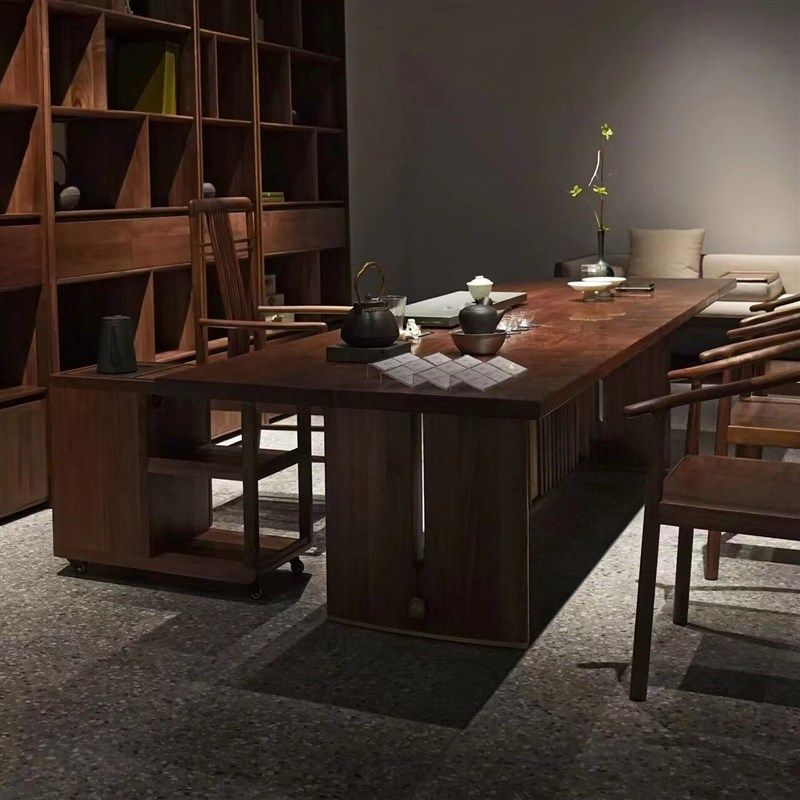 新中式 实木大阪茶桌椅组合客厅家用黑胡桃木泡茶桌简约办公室茶台