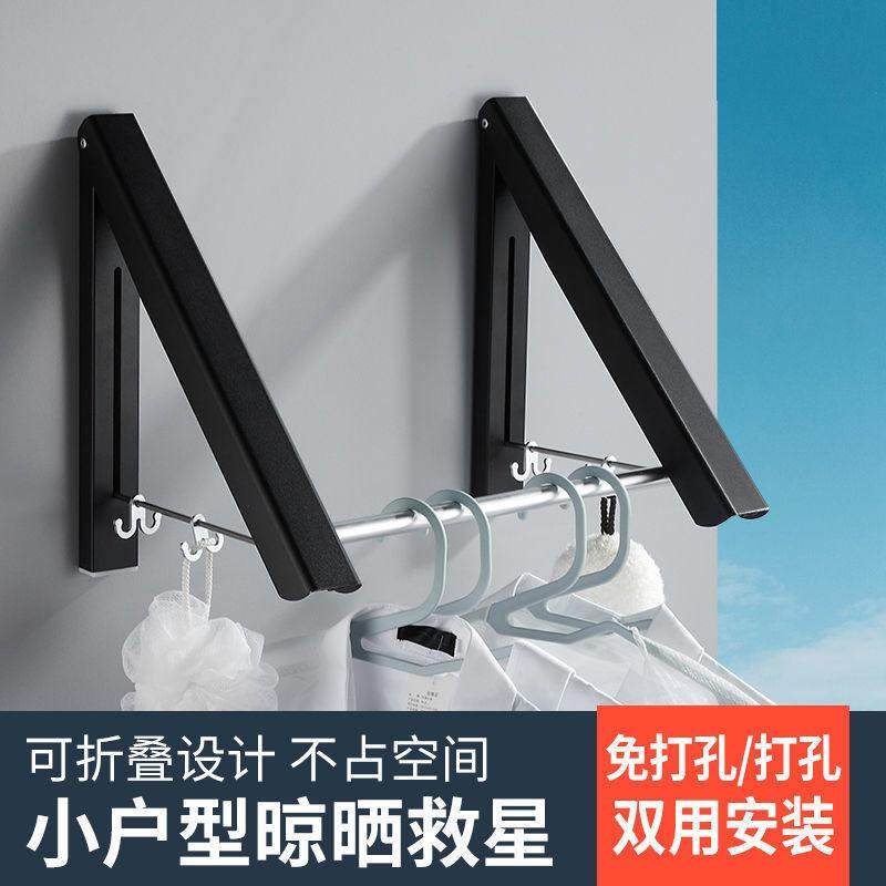 免打孔折叠晾衣架太空铝晾衣杆隐形壁挂式 晾衣神器室内外阳台酒店