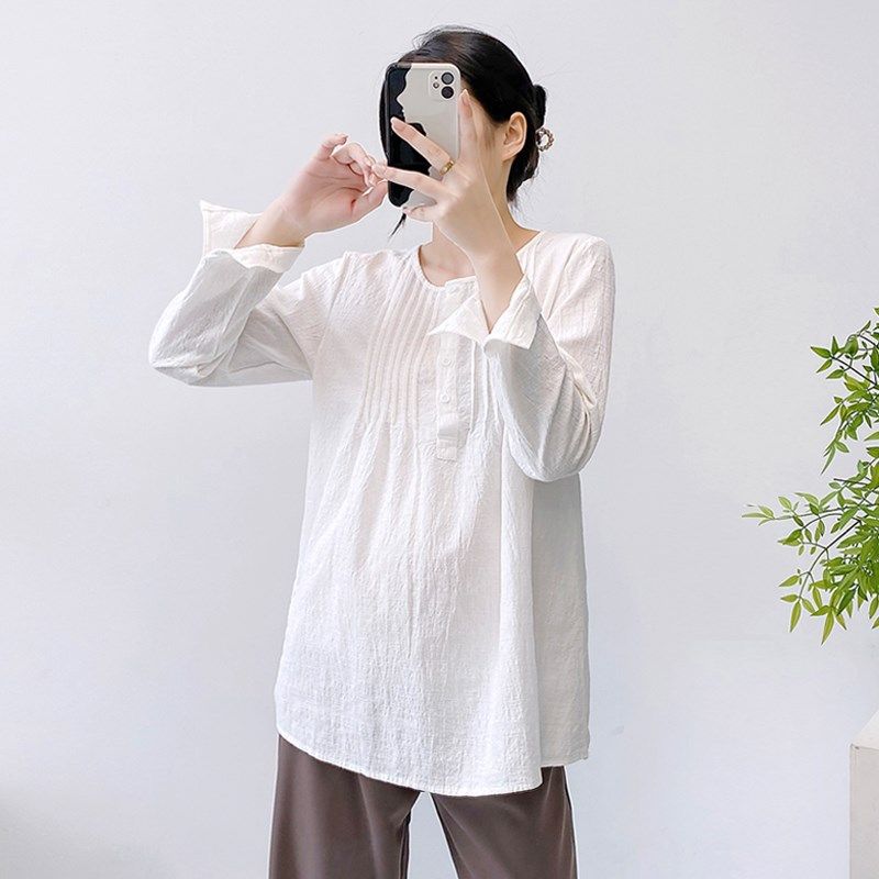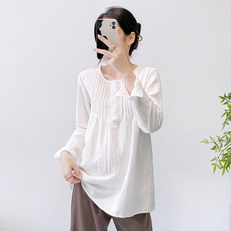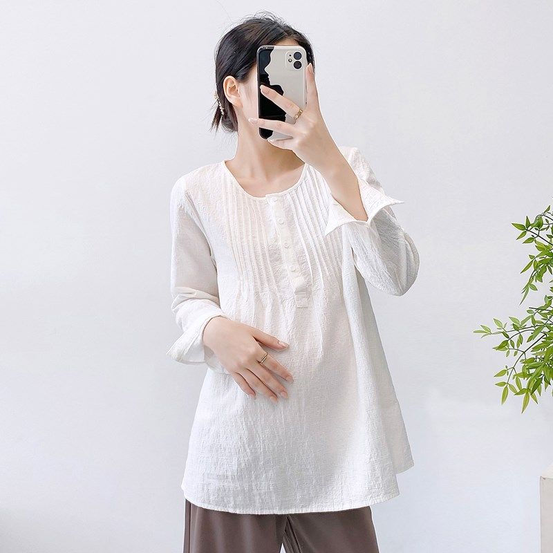 新品 孕妇装 圆领百褶孕妇衬衫 打底上衣春秋韩版 T恤 宽松A版 2025春装