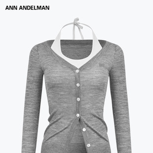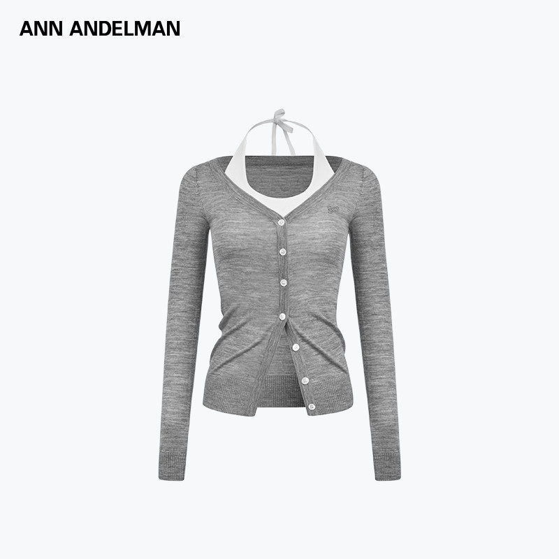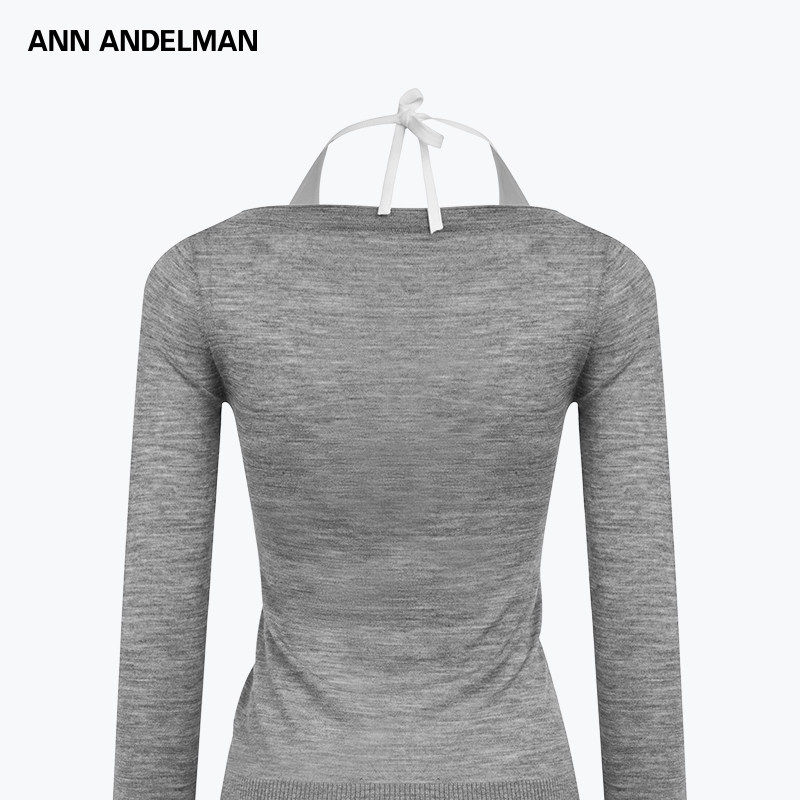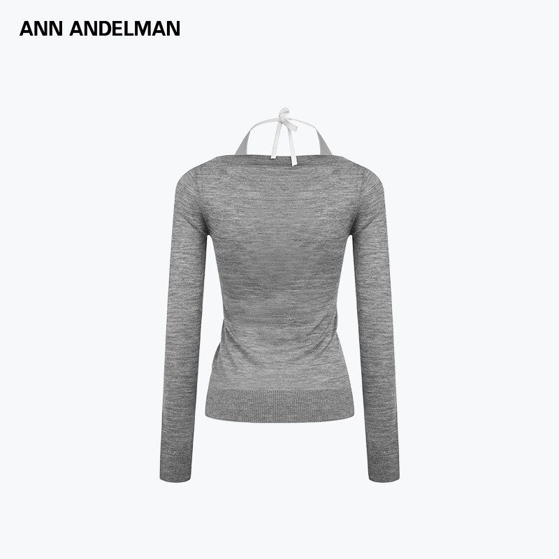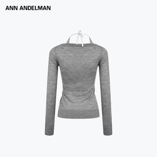 长袖 假两件挂颈绑带上衣薄款 T恤女 ANDELMAN官方直营早秋新款 ANN