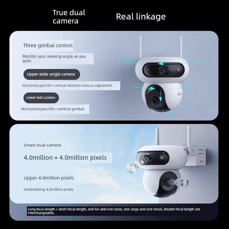 Ezviz Hb90户外双摄像头Ptz无线网络远程无流太阳能电池4g夜视摄