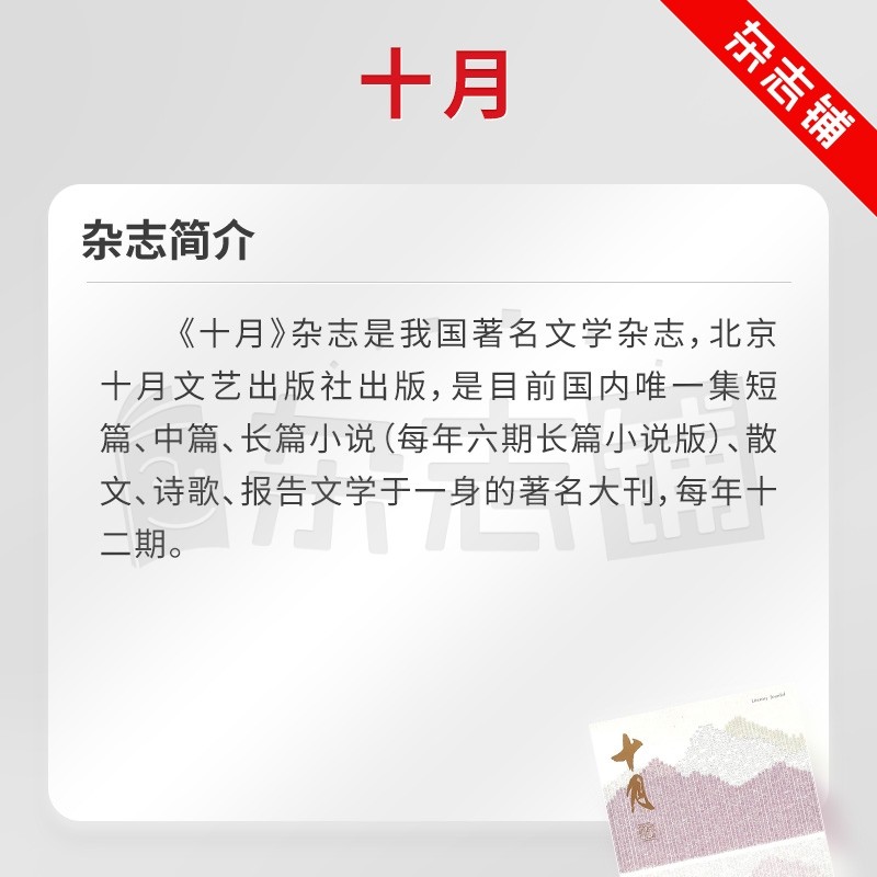 励志文学 情感故事 散文诗歌 十月杂志订阅杂志铺 青春阅读图书期刊杂志 1年共6期 中长短篇小说 全年订阅 2026年1月起订