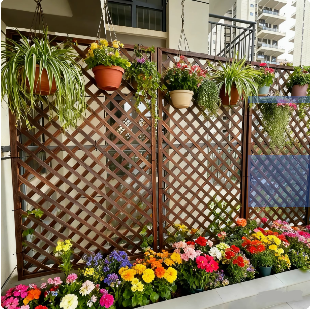 防腐木围栏栅栏户外花园篱笆爬藤架网格庭院阳台墙面装 饰围墙栅栏