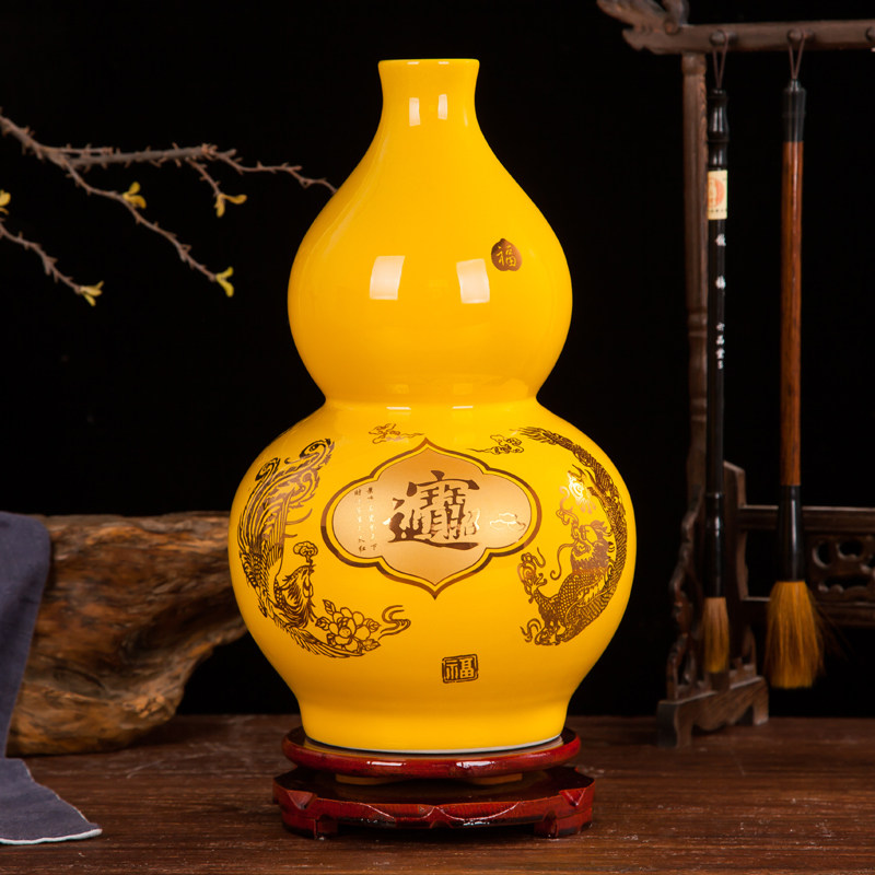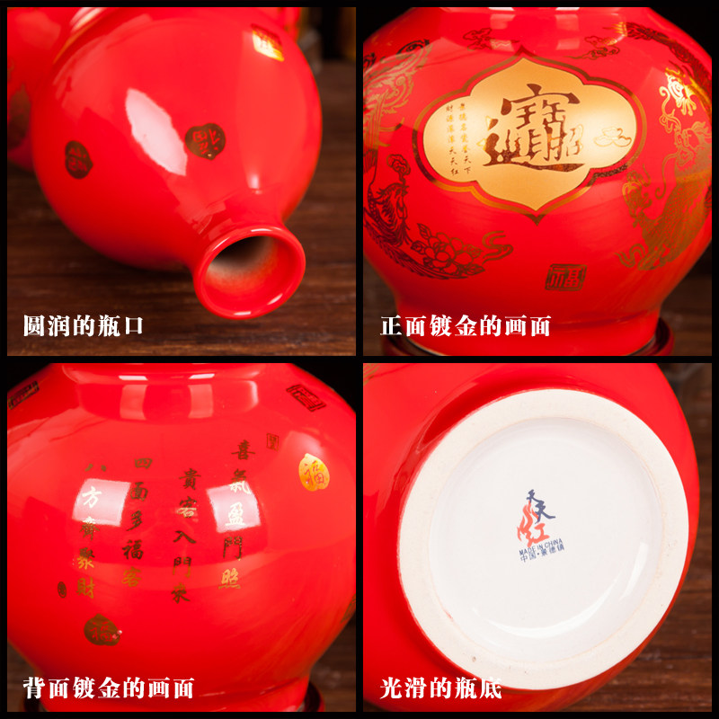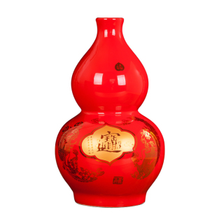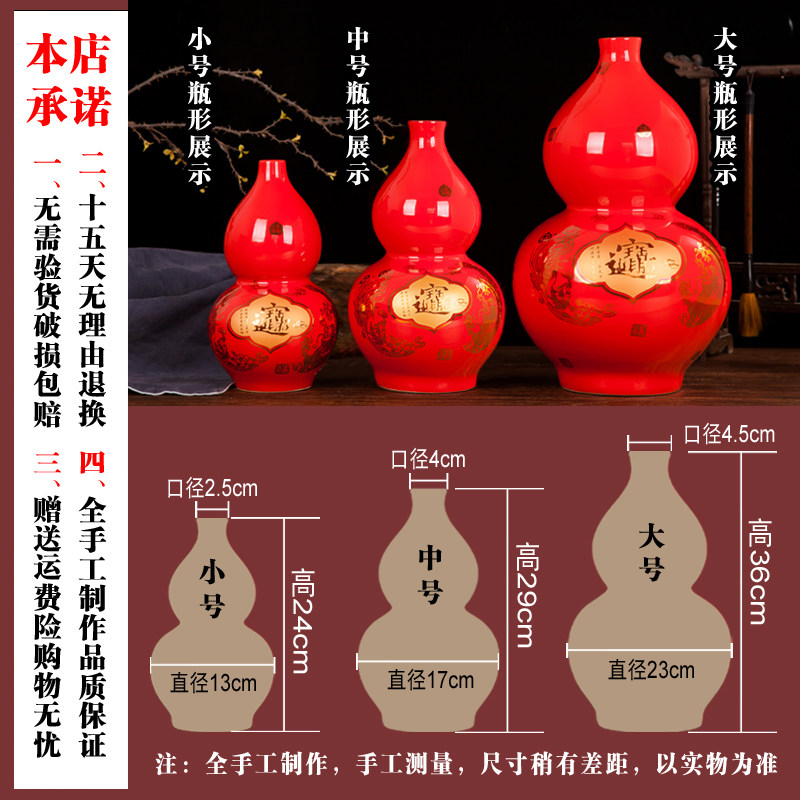 景德镇陶瓷花瓶摆件中国红招财进宝大葫芦花器现代时尚 饰品 家居装