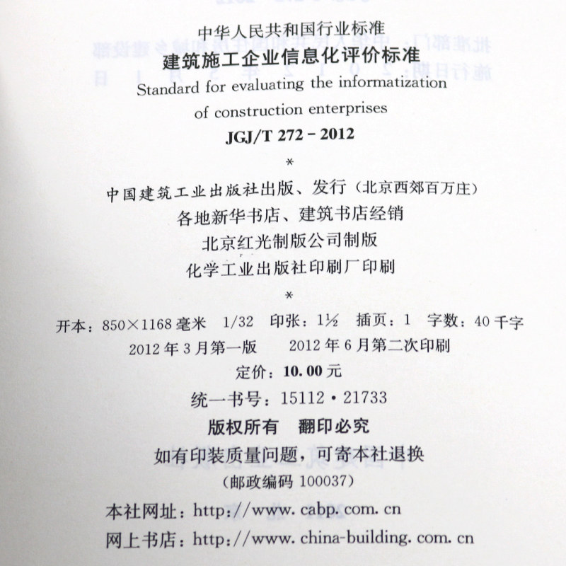 JGJ 2012建筑施工企业信息化评价标准 T272