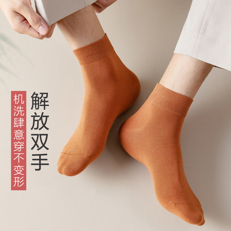 中筒短袜 黑色秋季 春夏纯棉袜子防臭透气吸汗男袜低帮纯色薄款 男士
